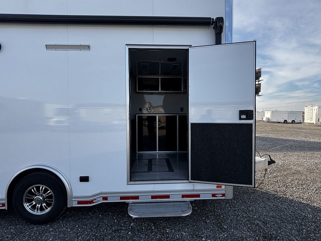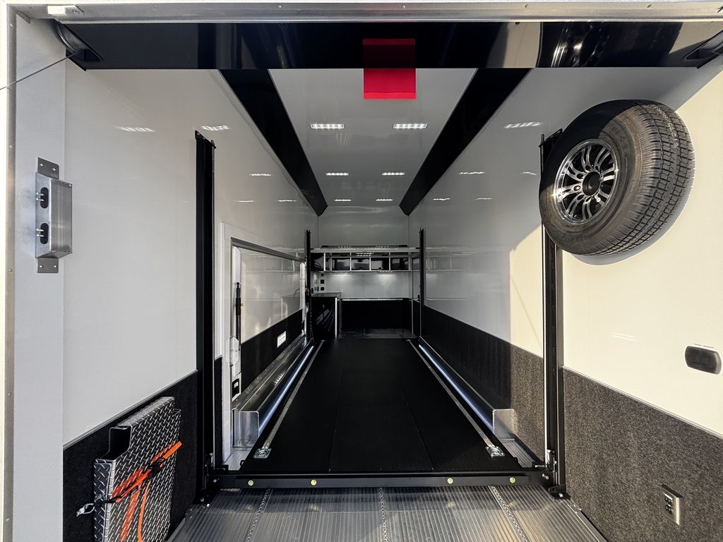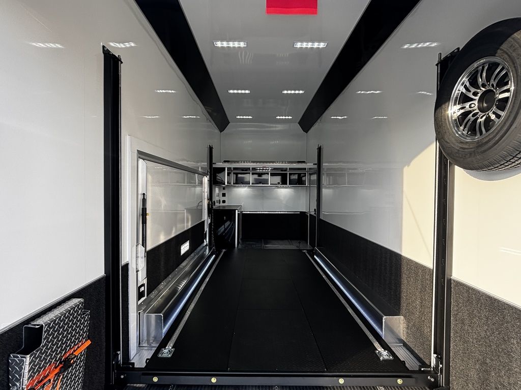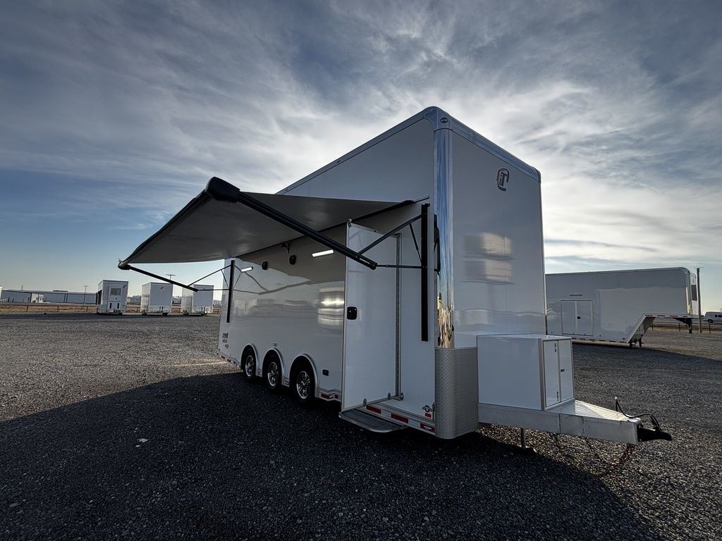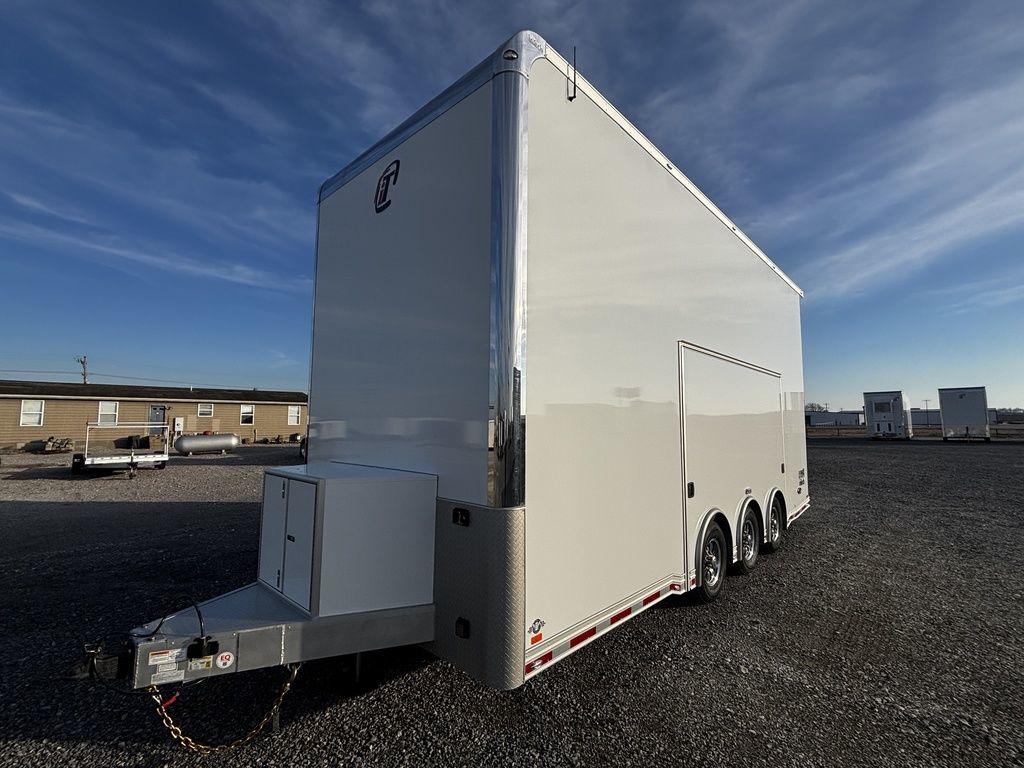 2026 24' inTech WIDE BODY Custom Stacker Trailer. Featuring Full Access Escape Door, 14' Tilting Lift, 11'4" Int Height, 4' Ramp Extension and more. Call today. 903-482-9335 >Features: 97.5" Rear Ramp Door Opening - 102" Wide Body Triple 6K Axles 11' 4" Int Height .050 Screwless/Rivetless Aluminum Exterior - White .030 Screwless/Rivetless Aluminum Interior -White Extruded Aluminum Floor, Ramp, & 4' Ramp Extension Full Access Escape Door w/Removeable Wheelbox 14' EZ-Load Tilting Lift w/Removable Center Lift Panels & Blue/White LED Light Strip Kit Under Lift Underside of Lift Finished w/ Aluminum, Treadplate Finish on Lift Surface In Floor Hydraulic Lift Pump, Rear Manual Stabilizer Jacks, & 32" Removable Lift Ramps w/ Wall Storage In Floor Battery Compartment Awning - 21' w/ Weathershield - 12V Power Awning Premium Cabinets -Black L- Shaped Upper Cabinets w/Top Hinged Doors Base Cabinet R/S Under Attic Light Duty Attic w/Matching Flooring - Rated at 40 Lbs/Sq Ft Up to Maximum of 2500 lbs 66" Deep Attic / 51.5" Attic to Ceiling / 80" Main Floor to Attic 34" Carpet Wainscot Wall Mounted Airline Track Tie- Down Front Wall & C/S Wall 3 Rows Airline Track Tie-Down on Main Floor & 4 -D-Rings 2 Rows Airline Track Tie-Down on Lift & 4 D-Rings 2 Rows Airline Track Tie-Down on Attic 30Amp Electrical & LED Lights LED Scene Lights Above Rear Ramp Door LED Scene Lights Under Awning C/S Insulated Ceiling 36" Side Entry Door w/Aluminum Slide Out Step Stereo w/Int & Ext Speakers Aluminum Wheels Wall Mounted Spare Wheel & Tire Lowered Skirt w/ Reverse Beavertail Design Color Matched Tongue Storage Box w/Front Double Doors Weight Distribution Prep Hydraulic Front Jack HD Rear Ramp Door w/Recessed Stainless Steel Latches Color Matched Rear Spoiler Stainless Steel Rear Header & Posts Stainless Steel Front Verticals & Radius 36" ATP Wraparound Style Stoneguard Rear Caster Wheels 83.5" Between Wheel Wells 98" W X 96" H Rear Ramp Door Give us a call to learn more and reserve today. 903-482-9335 travis@flyingamotorsports.com Financing and Delivery available. "WE ARE RACERS LIKE YOU" Flying A Motorsports The # 1 Intech Dealer Leading the Motorsports Transportation Industry - Since 1988