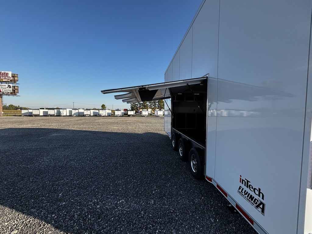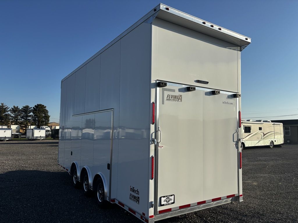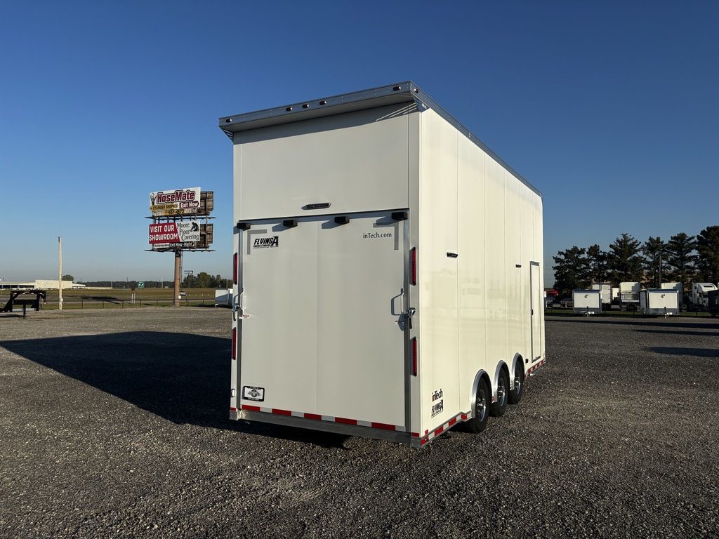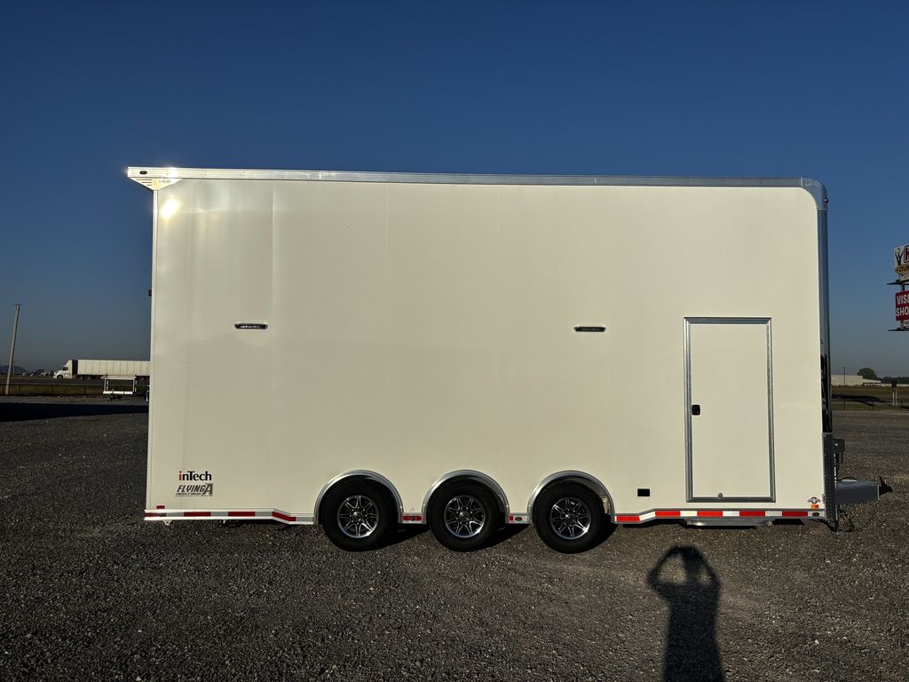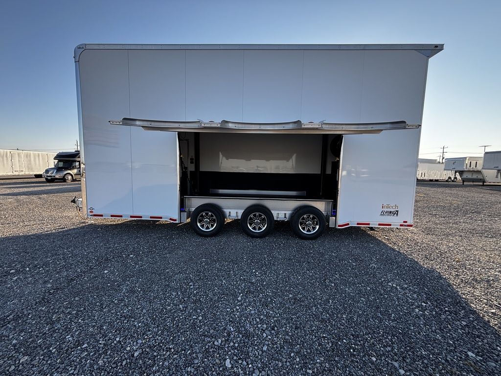 2026 24' inTech Lite Stacker w/Full Access Escape Door, 11 4" Interior Height, 14' Tilting Lift, 6K Axles, Airline Track Tie-down, 4' Ramp Extension, and more. Call to reserve today. 903-482-9335 Features: 11'4" Int Height Triple 6K Axles .050 Screwless/Rivetless Aluminum Exterior - White .030 Screwless/Rivetless Aluminum Interior - White 8' Upper Aluminum Cabinet w/ Top Hinged Doors -Black 8' Straight Base Cabinet w/Black HDPE Countertop -Black 10' X 6' Full Access Escape Door w/Removeable Wheelbox Extruded Aluminum Floor, Ramp, & 4' Aluminum Ramp Extension 14' EZ-Load Tilting Split Rail Lift (6000# Capacity) Removeable Center Lift Panels Underside of Lift Finished w/ Aluminum In Floor Hydraulic Lift Pump Rear Manual Stabilizer Jacks 4 -5000# Recessed D-Rings on Lift Floor 2 - Rows Black Airline Track Tie-Down on Lift 4 -5000# Recessed D-Rings on Main Floor 2 Rows Aluminum Airline Track to Main Floor 32" Removable Lift Ramps w/ Wall Storage 34" Carpet Wainscot 18" Tie-Down Strap Hangers w/Carpet Behind Light Duty Attic w/Grey Carpet Floor Wall Mounted Ladder to Access Attic Winch Plate Prep for Future Winch Installation Spare Wall Mounted Wheel & Tire 30Amp Electrical Service 3' Interior Beavertail 36" Side Entry Door w/Aluminum Slide Out Step 36" ATP Wraparound Stoneguard Extended Tongue w/ATP Tongue Cover 4500# Electric Jack Installed HD Rear Ramp Door w/Stainless Steel Paddle Latches Rear Manual Stabilizer Jacks Polished Cast Aluminum Corners & SS Front Verticals & Radius Rear Caster Wheels Give us a call today to learn more. 903-482-9335 Financing and Delivery available. Flying A Motorsports travis@flyingamotorsports.com "RACERS JUST LIKE YOU" Flying A Motorsports Leading the Motorsports Transportation Industry - Since 1988