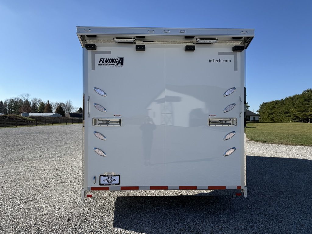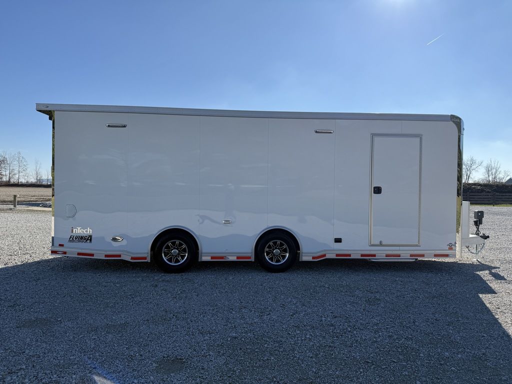 2026 24' inTech iCon Trailer featuring Full Access Escape Door. WIDE BODY Design with 7.5' Int Height, Airline/L Track Tie-down, 5' Ramp Extension and more. Call to reserve today. 903-482-9335 Features: All Aluminum 7.5' Int Height Tandem Super Spread 6K Axles .040 Screwless/Rivetless Aluminum Ext- White .030 Screwless/Rivetless Aluminum Int- White iCon Package 97.5" Rear Ramp Door Opening - 102" Wide Body Extruded Aluminum Floor, Ramp, & 5' Ramp Ext Full Access Escape Door w/Removeable Wheelbox Black Anodized Interior Package Upper Cabinets w/Top Hinged Doors - Silver 34" Carpet Wainscot 2 - Rows Airline Track Tie Down on Main Floor 4 - Recessed D-Rings In Floor Compartment Aluminum Wheels Spare Wheel & Tire 34" Carpet Wainscot Carpeted Wheelboxes 30Amp Electrical & LED Light 36" Side Entry Door w/Aluminum Slide Out Step Insulated Walls & Ceiling 2 - Manual Vents (1 Prepped for Future A/C) Pair of Flow Through Vent System 48" Beavertail Extended Tongue w/4500# Power Jack Color Matched Tongue Mounted Generator Compartment w/Slide for Future Portable Generator 83.5" Between Wheel Wells HD Rear Ramp Door 98" W X 89.5" H 24" ATP Stoneguard Cast Corners w/ Stainless Steel Verticals & Radius Stainless Steel Rear Header & Posts Color Matched Rear Spoiler Rear Caster Wheels & Skid Plates Give us a call today to learn more. 903-482-9335 Financing and Delivery available. Flying A Motorsports 903-482-9335 travis@flyingamotorsports.com "RACERS JUST LIKE YOU" Flying A Motorsports Leading the Motorsports Transportation Industry - Since 1988