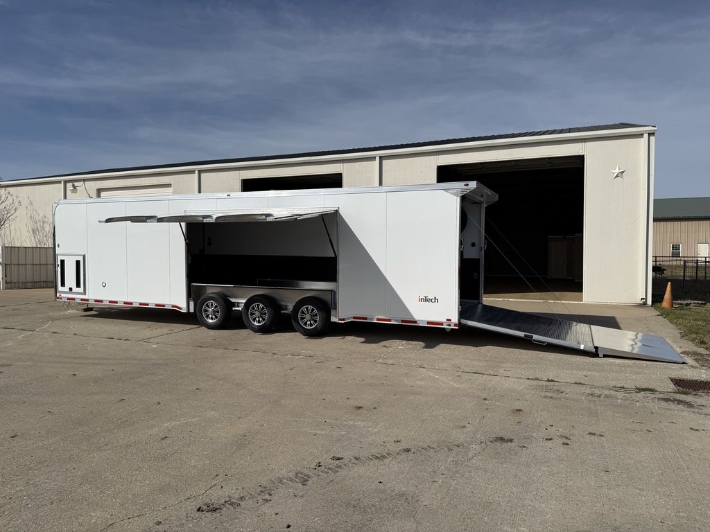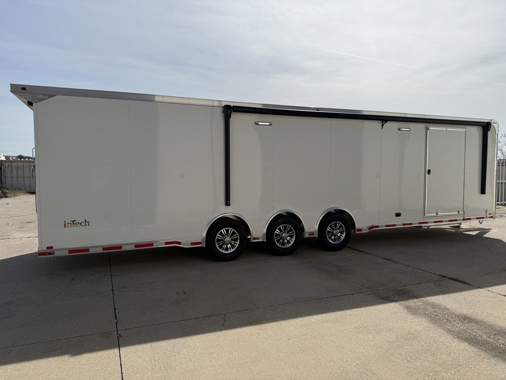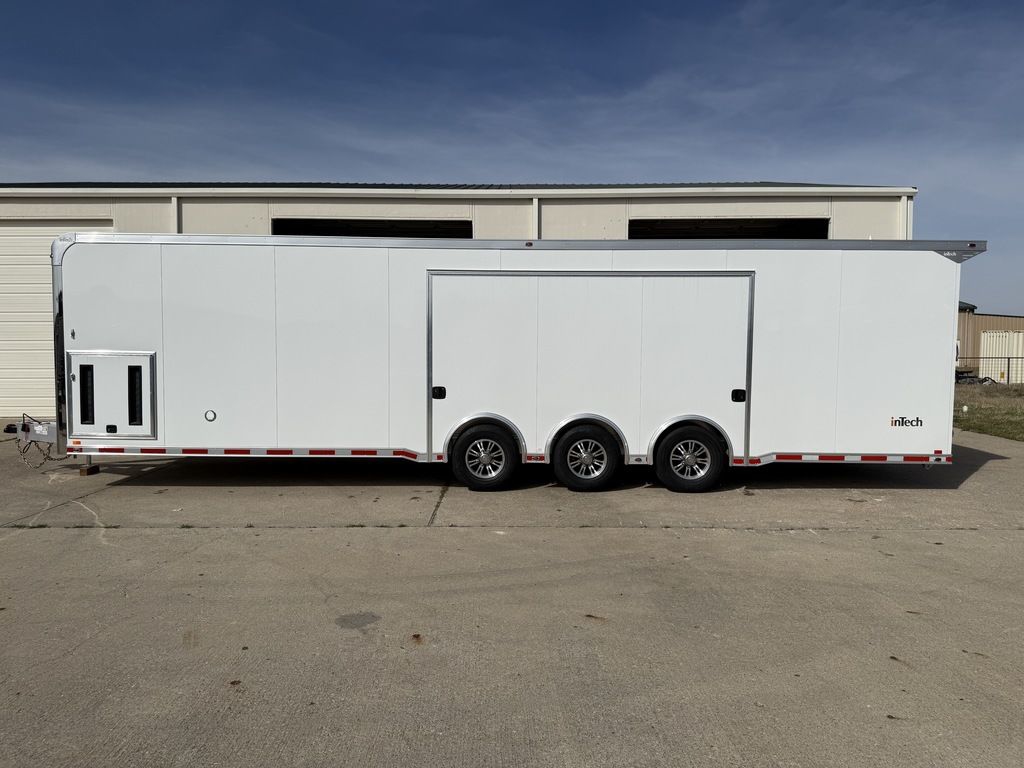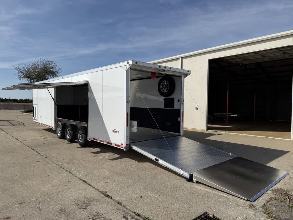 2026 32' inTech Lite Trailer w/Escape Door. Featuring 21' Awning, Cabinets, 4' Ramp Ext, Strap Hanger, Airline Tie-down and more. Call Today 214-807-1008. Features: Triple 6K Axles 7' Int Height .040 Screwless/Rivetless Aluminum Exterior -White .030 Screwless/Rivetless Aluminum Interior -White Full Access Escape Door - 10' x 6' w/Removeable Wheelbox Extruded Aluminum Floor & Ramp w/4' Ramp Extension 21' w/ Weathershield - 12V Power Awning 8' Upper Cabinets w/Top Hinged Doors Above Base Cabinets -Black R/S Black HDPE Countertop on Base Cabinet 2 - Rows of Aluminum Airline Track Installed 34" Carpet Wainscot 18" Wide Tie Down Strap Hangers w/Carpet Behind 48" Side Entry Door w/Slide Out Aluminum Step Winch Plate for Future Winch Installation Recessed D-Rings 1 - Manual Roof Vent Insulated Walls & Ceiling 30Amp Electrical & LED Lights 4 - Recessed D-Rings 4' Interior Beavertail Aluminum Wheels & Wall Mounted Spare Wheel & Tire Generator Compartment w/Slides for Future Portable Generator 24" ATP Stoneguard Extended Tongue w/3500# Power Jack Installed Toward Rear of Tongue for Additional Clearance Polished Cast Aluminum Corners Stainless Steel High Polish Front Verticals & Radius Rear Paddle Latch Rear Spoiler Rear Caster Wheels *ON ORDER options and selections may vary, photos of similar trailer. Give us a call today to learn more. 214-807-1008 travis@flyingamotorsports.com Financing and Delivery available. "WE ARE RACERS LIKE YOU" Flying A Motorsports The # 1 Intech Dealer Leading the Motorsports Transportation Industry - Since 1988