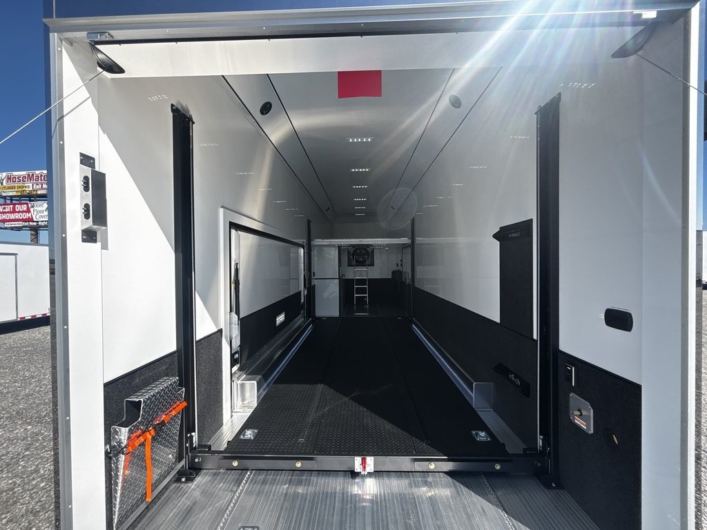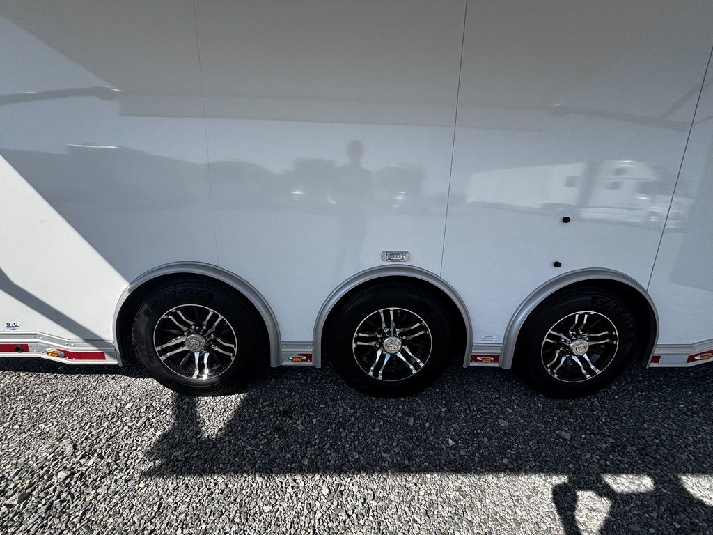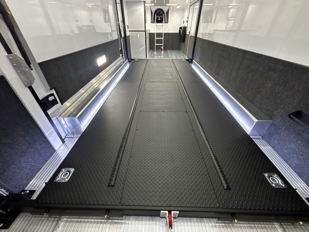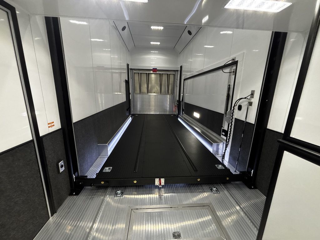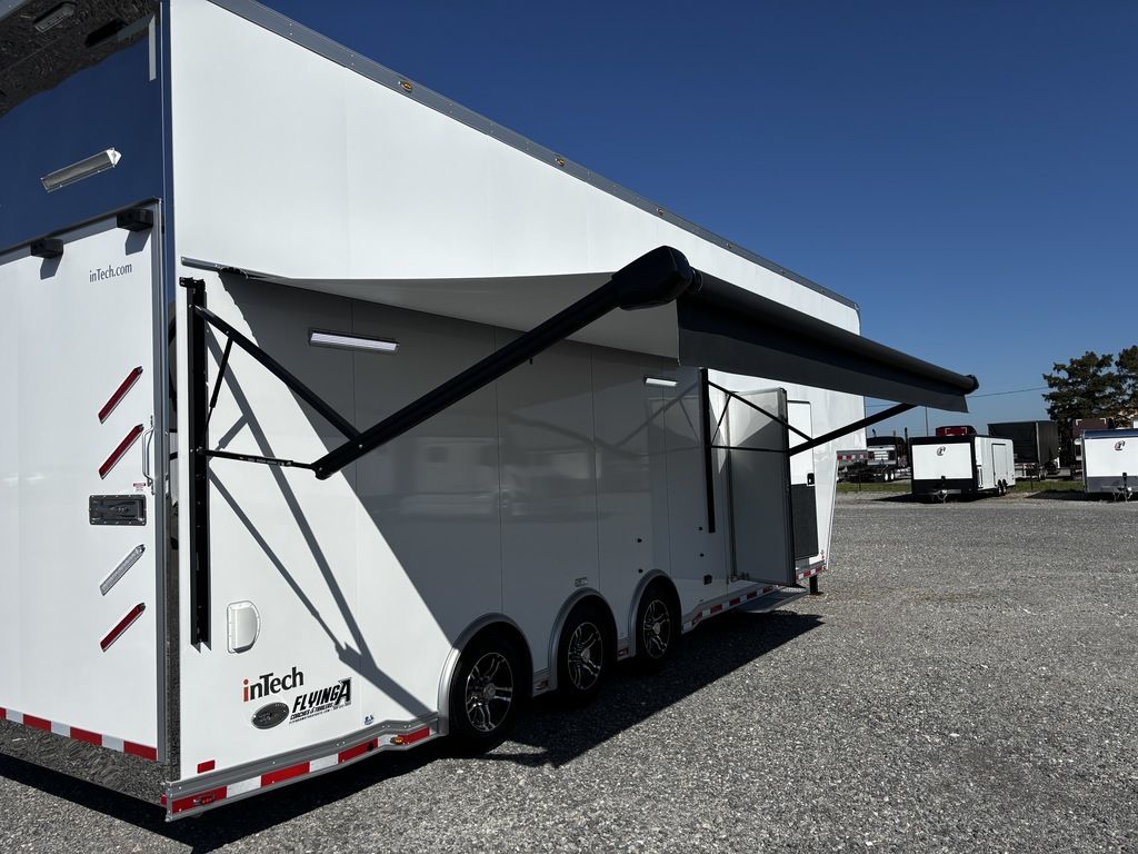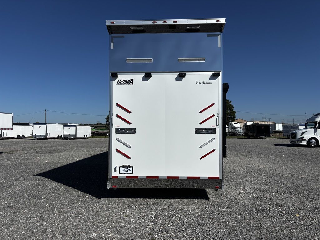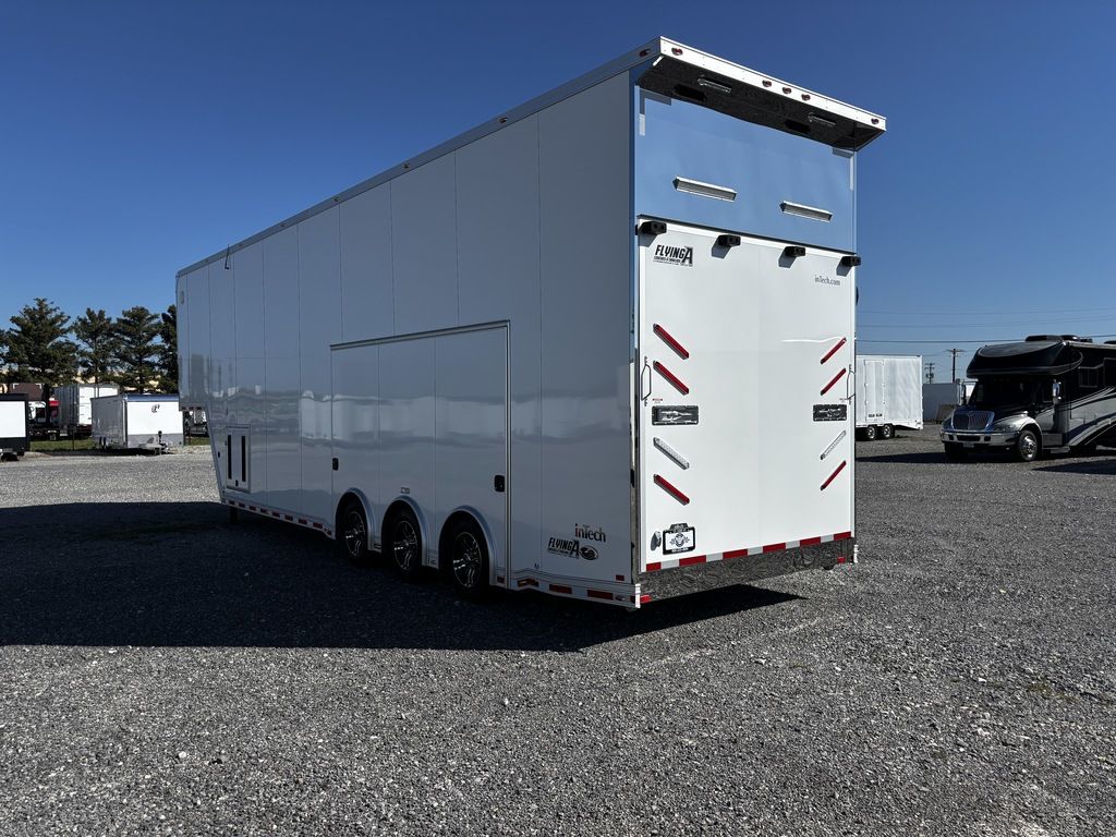 2026 38' Intech Stacker WIDE BODY Trailer with Escape Door, 16' Lift, Black Interior Trim, Premium Cabinets and more. Call today. 214-807-1008 *ON ORDER photos of similar trailer, options and selections may vary. Features: 97.5" Rear Ramp Door Opening - 102" Wide Body Triple 7K Axles 11' 4" Int Height .050 Screwless/Rivetless Aluminum Exterior - White .030 Screwless/Rivetless Aluminum Interior -White Extruded Aluminum Floor, Ramp, & 4' Ramp Extension Triple Axle Full Access Escape Door - 6' Tall w/Removeable Wheelbox 16' EZ-Load Tilting Lift w/Removable Center Lift Panels, Blue/White LED Light Strip Kit Under Lift In Floor Hydrualic Lift Pump, Rear Manual Stabilizer Jacks, 32" Removable Lift Ramps w/ Wall Storage, Black Treadplate Finish on Lift Surface Pulleys on Stacker Lift For Winch Operation on Lift 5000# Winch w/Wireless Remote & Synthetic Rope Bunk Riser Wall Winch Prep w/ Fairlead Premium Cabinets - Silver Frost 1/2 Closet Cabinet w/Shelf & Hanging Bar Upper Cabinets w/Top Hinged Doors Above Workbench Base Cabinet R/S 48" Flip Up/Removable Workbench w/Int & Ext Mounting Locations 52" Bunk w/Removable Ladder for Access HD Attic w/Aluminum Transition Flap from Attic to Lift (Rated at 55 Lbs/Sq Ft Up to Maximum of 4000 lbs) (224" Overall Length/ 56" Attic to Ceiling / 75" Main Floor to Attic) 60" Double Side Entry Doors w/Aluminum Slide Out Step Black Anodized Interior Package - Interior Door Trim, Cabinet Trim, J-Rail on Cove, J-Rail on Bottom of Sidewall Metal, J-Rail on Spring Box, & J-Rail for Carpeted Areas Airline Full Prep Package - 1 Inlet - 3 Outlets Airline Track Tie-down on Main Floor Airline Track Tie-down on Lift 4 - D-Rings on Attic 4 - D-Rings on Lift 4 - D-Rings on Main Floor 18" Wide Tie Down Strap Hangers w/Carpet Behind Aluminum Wheels w/215/75R17.5 Tires Spare Wall Mounted Wheel & Tire Generator Prep w/ Premium Transfer Switch & Generator Compartment w/Slides for Future Portable Generator Fixed Shelf in Exterior GN Riser Compartment for Future Air Compressor 50Amp Electrical & LED Lights 2 Scene Lights C/S 2 Scene Lights Above Rear Ramp Door Insulated Ceiling Stereo w/Interior Speakers 34" Carpet Wainscot NO Beavertail Lowered Skirt w/ Reverse Beavertail Design HD Rear Ramp Door w/Recessed Stainless Steel Latches Stainless Steel Rear Header & Posts Color Matched Rear Spoiler Rear Caster Wheels & Skid Plates 98" W X 94" H Rear Ramp Door 83.5" Between Wheel Wells *ON ORDER photos of similar trailer, options and selections may vary. Give us a call to learn more and reserve today. 903-482-9335 travis@flyingamotorsports.com Financing and Delivery available. "RACERS JUST LIKE YOU" Flying A Motorsports Leading the Motorsports Transportation Industry - Since 1988
