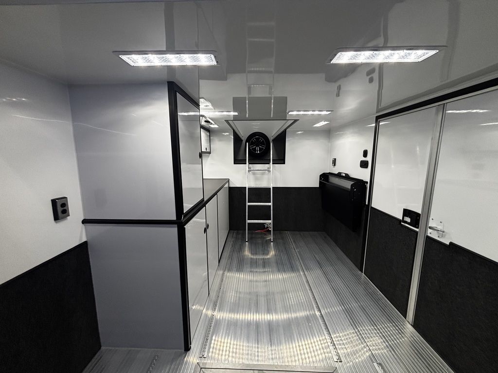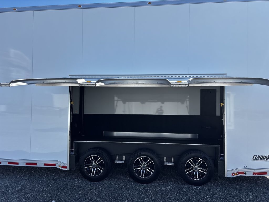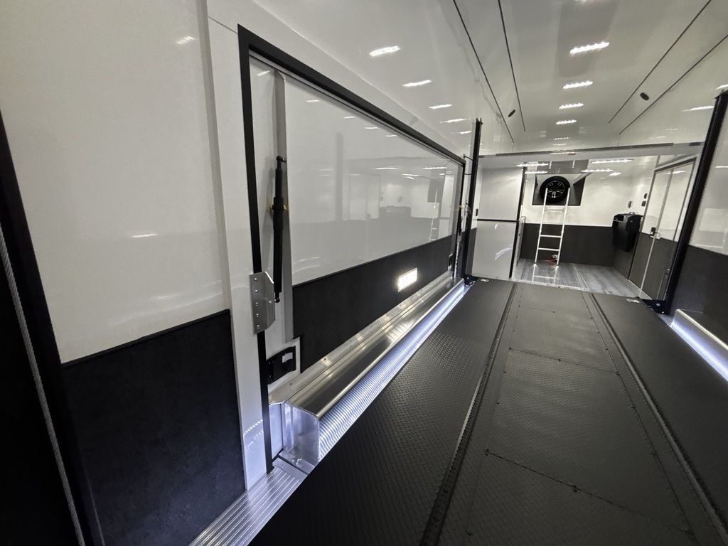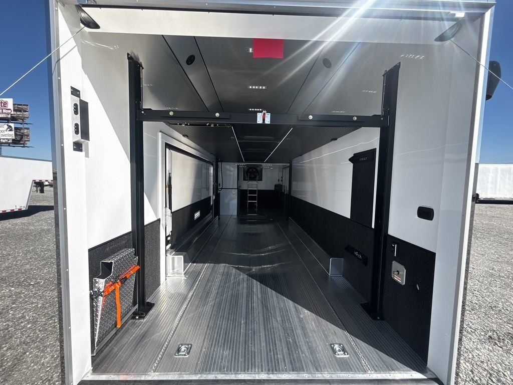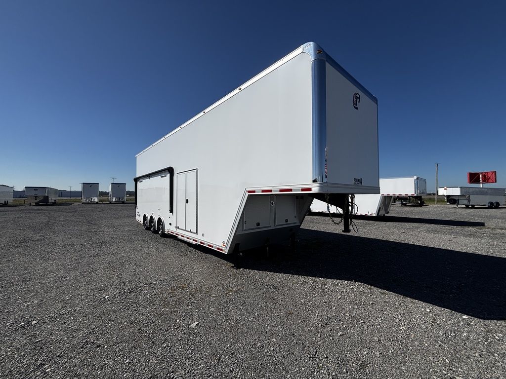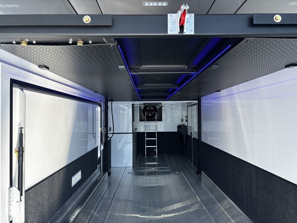 2026 38' Intech Stacker WIDE BODY Trailer with Escape Door, 16' Lift, Black Interior Trim, Premium Cabinets and more. Call today. 214-807-1008 *ON ORDER photos of similar trailer, options and selections may vary. Features: 97.5" Rear Ramp Door Opening - 102" Wide Body Triple 7K Axles 11' 4" Int Height .050 Screwless/Rivetless Aluminum Exterior - White .030 Screwless/Rivetless Aluminum Interior -White Extruded Aluminum Floor, Ramp, & 4' Ramp Extension Triple Axle Full Access Escape Door - 6' Tall w/Removeable Wheelbox 16' EZ-Load Tilting Lift w/Removable Center Lift Panels, Blue/White LED Light Strip Kit Under Lift In Floor Hydrualic Lift Pump, Rear Manual Stabilizer Jacks, 32" Removable Lift Ramps w/ Wall Storage, Black Treadplate Finish on Lift Surface Pulleys on Stacker Lift For Winch Operation on Lift 5000# Winch w/Wireless Remote & Synthetic Rope Bunk Riser Wall Winch Prep w/ Fairlead Premium Cabinets - Silver Frost 1/2 Closet Cabinet w/Shelf & Hanging Bar Upper Cabinets w/Top Hinged Doors Above Workbench Base Cabinet R/S 48" Flip Up/Removable Workbench w/Int & Ext Mounting Locations 52" Bunk w/Removable Ladder for Access HD Attic w/Aluminum Transition Flap from Attic to Lift (Rated at 55 Lbs/Sq Ft Up to Maximum of 4000 lbs) (224" Overall Length/ 56" Attic to Ceiling / 75" Main Floor to Attic) 60" Double Side Entry Doors w/Aluminum Slide Out Step Black Anodized Interior Package - Interior Door Trim, Cabinet Trim, J-Rail on Cove, J-Rail on Bottom of Sidewall Metal, J-Rail on Spring Box, & J-Rail for Carpeted Areas Airline Full Prep Package - 1 Inlet - 3 Outlets Airline Track Tie-down on Main Floor Airline Track Tie-down on Lift 4 - D-Rings on Attic 4 - D-Rings on Lift 4 - D-Rings on Main Floor 18" Wide Tie Down Strap Hangers w/Carpet Behind Aluminum Wheels w/215/75R17.5 Tires Spare Wall Mounted Wheel & Tire Generator Prep w/ Premium Transfer Switch & Generator Compartment w/Slides for Future Portable Generator Fixed Shelf in Exterior GN Riser Compartment for Future Air Compressor 50Amp Electrical & LED Lights 2 Scene Lights C/S 2 Scene Lights Above Rear Ramp Door Insulated Ceiling Stereo w/Interior Speakers 34" Carpet Wainscot NO Beavertail Lowered Skirt w/ Reverse Beavertail Design HD Rear Ramp Door w/Recessed Stainless Steel Latches Stainless Steel Rear Header & Posts Color Matched Rear Spoiler Rear Caster Wheels & Skid Plates 98" W X 94" H Rear Ramp Door 83.5" Between Wheel Wells *ON ORDER photos of similar trailer, options and selections may vary. Give us a call to learn more and reserve today. 903-482-9335 travis@flyingamotorsports.com Financing and Delivery available. "RACERS JUST LIKE YOU" Flying A Motorsports Leading the Motorsports Transportation Industry - Since 1988