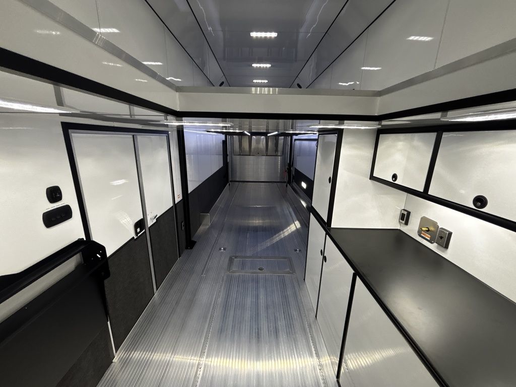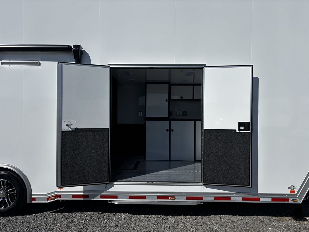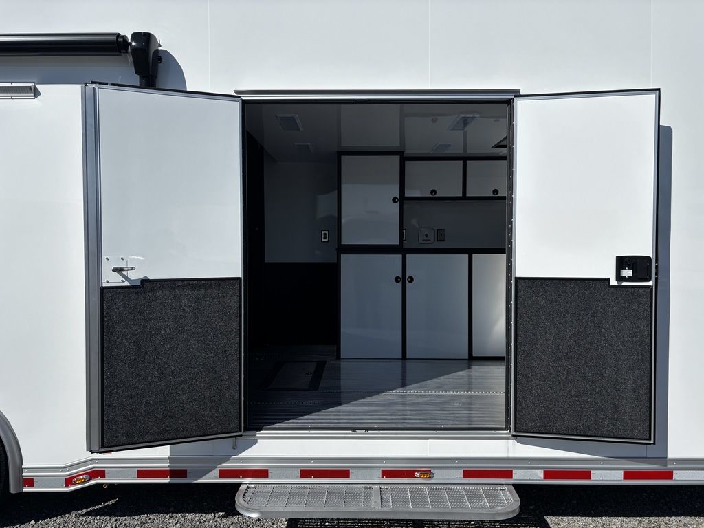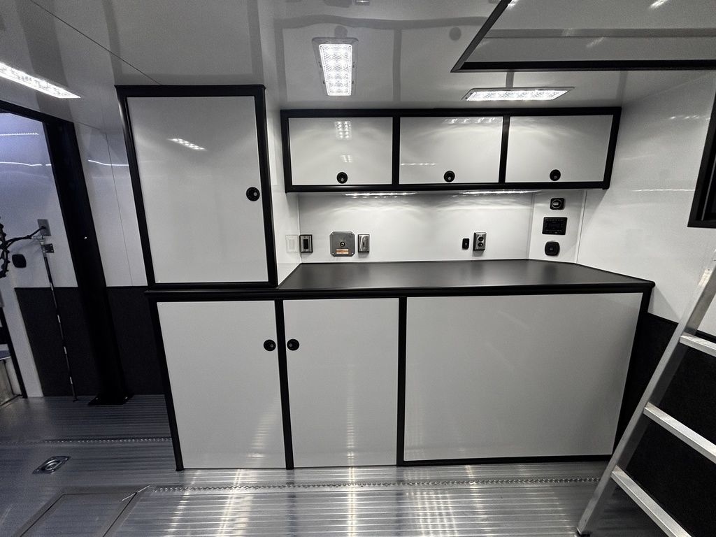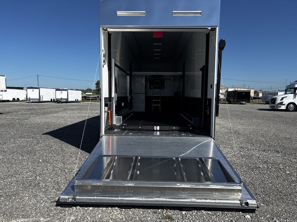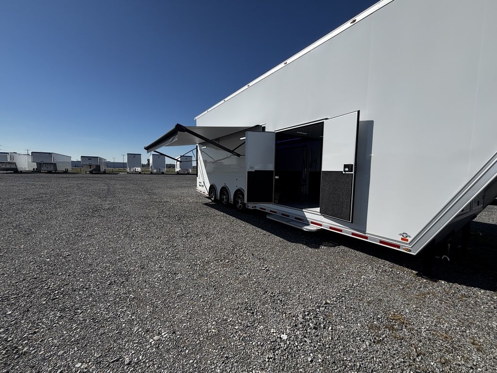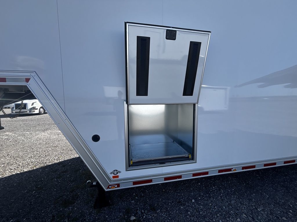 2026 38' Intech Stacker WIDE BODY Trailer with Escape Door, 16' Lift, Black Interior Trim, Premium Cabinets and more. Call today. 214-807-1008 *ON ORDER photos of similar trailer, options and selections may vary. Features: 97.5" Rear Ramp Door Opening - 102" Wide Body Triple 7K Axles 11' 4" Int Height .050 Screwless/Rivetless Aluminum Exterior - White .030 Screwless/Rivetless Aluminum Interior -White Extruded Aluminum Floor, Ramp, & 4' Ramp Extension Triple Axle Full Access Escape Door - 6' Tall w/Removeable Wheelbox 16' EZ-Load Tilting Lift w/Removable Center Lift Panels, Blue/White LED Light Strip Kit Under Lift In Floor Hydrualic Lift Pump, Rear Manual Stabilizer Jacks, 32" Removable Lift Ramps w/ Wall Storage, Black Treadplate Finish on Lift Surface Pulleys on Stacker Lift For Winch Operation on Lift 5000# Winch w/Wireless Remote & Synthetic Rope Bunk Riser Wall Winch Prep w/ Fairlead Premium Cabinets - Silver Frost 1/2 Closet Cabinet w/Shelf & Hanging Bar Upper Cabinets w/Top Hinged Doors Above Workbench Base Cabinet R/S 48" Flip Up/Removable Workbench w/Int & Ext Mounting Locations 52" Bunk w/Removable Ladder for Access HD Attic w/Aluminum Transition Flap from Attic to Lift (Rated at 55 Lbs/Sq Ft Up to Maximum of 4000 lbs) (224" Overall Length/ 56" Attic to Ceiling / 75" Main Floor to Attic) 60" Double Side Entry Doors w/Aluminum Slide Out Step Black Anodized Interior Package - Interior Door Trim, Cabinet Trim, J-Rail on Cove, J-Rail on Bottom of Sidewall Metal, J-Rail on Spring Box, & J-Rail for Carpeted Areas Airline Full Prep Package - 1 Inlet - 3 Outlets Airline Track Tie-down on Main Floor Airline Track Tie-down on Lift 4 - D-Rings on Attic 4 - D-Rings on Lift 4 - D-Rings on Main Floor 18" Wide Tie Down Strap Hangers w/Carpet Behind Aluminum Wheels w/215/75R17.5 Tires Spare Wall Mounted Wheel & Tire Generator Prep w/ Premium Transfer Switch & Generator Compartment w/Slides for Future Portable Generator Fixed Shelf in Exterior GN Riser Compartment for Future Air Compressor 50Amp Electrical & LED Lights 2 Scene Lights C/S 2 Scene Lights Above Rear Ramp Door Insulated Ceiling Stereo w/Interior Speakers 34" Carpet Wainscot NO Beavertail Lowered Skirt w/ Reverse Beavertail Design HD Rear Ramp Door w/Recessed Stainless Steel Latches Stainless Steel Rear Header & Posts Color Matched Rear Spoiler Rear Caster Wheels & Skid Plates 98" W X 94" H Rear Ramp Door 83.5" Between Wheel Wells *ON ORDER photos of similar trailer, options and selections may vary. Give us a call to learn more and reserve today. 903-482-9335 travis@flyingamotorsports.com Financing and Delivery available. "RACERS JUST LIKE YOU" Flying A Motorsports Leading the Motorsports Transportation Industry - Since 1988