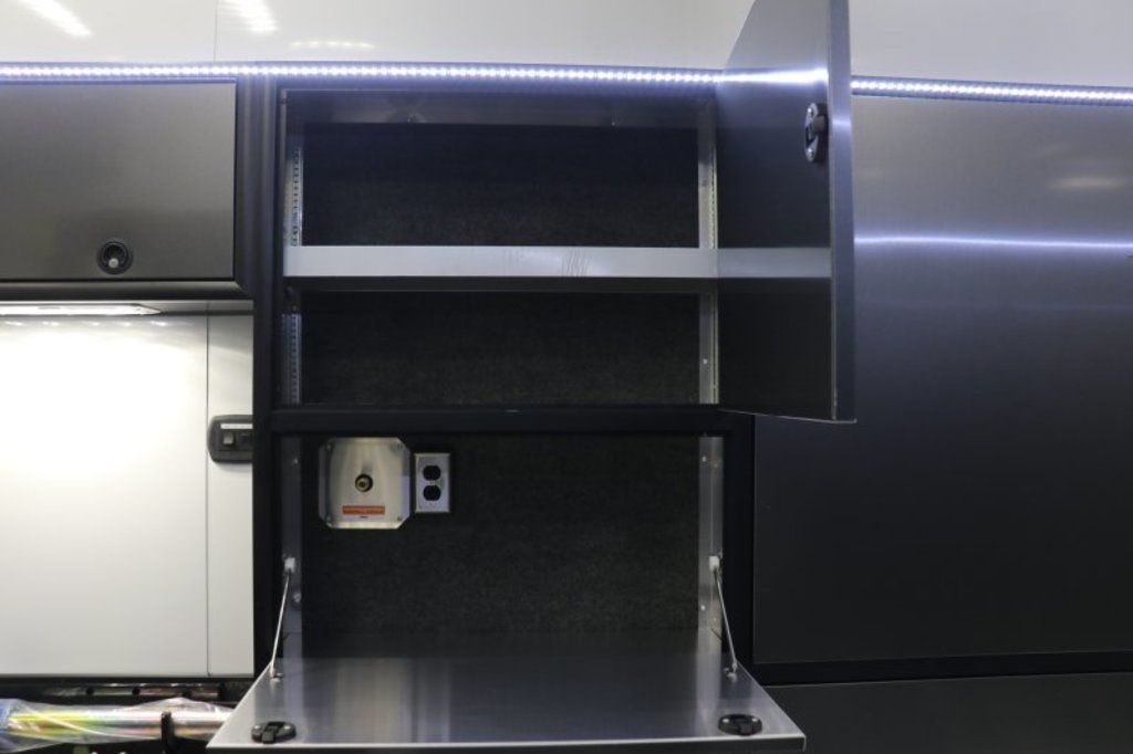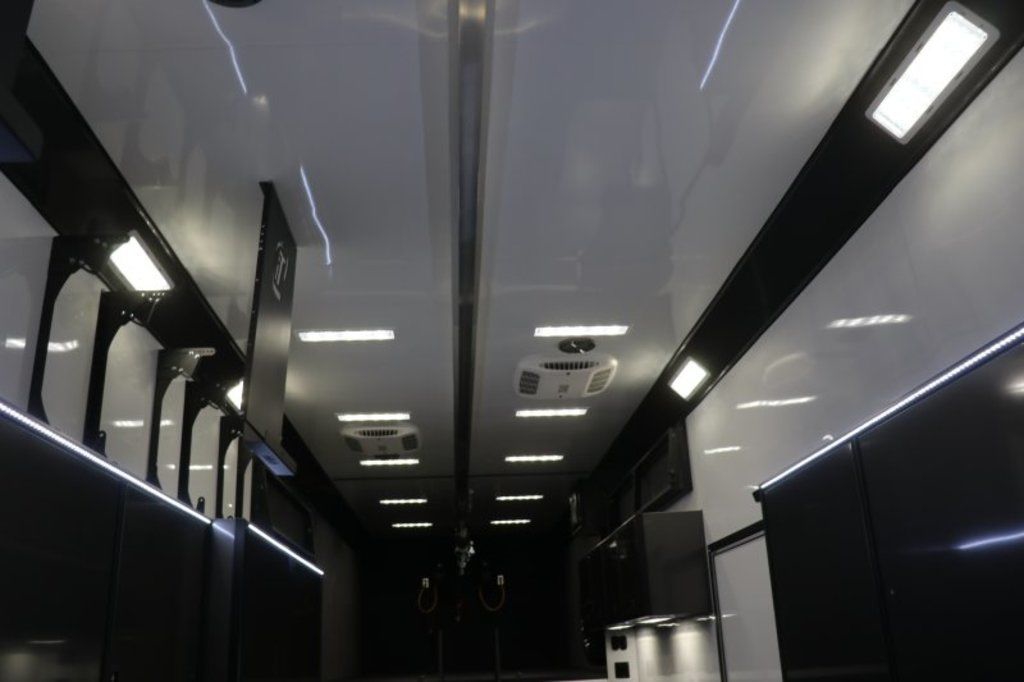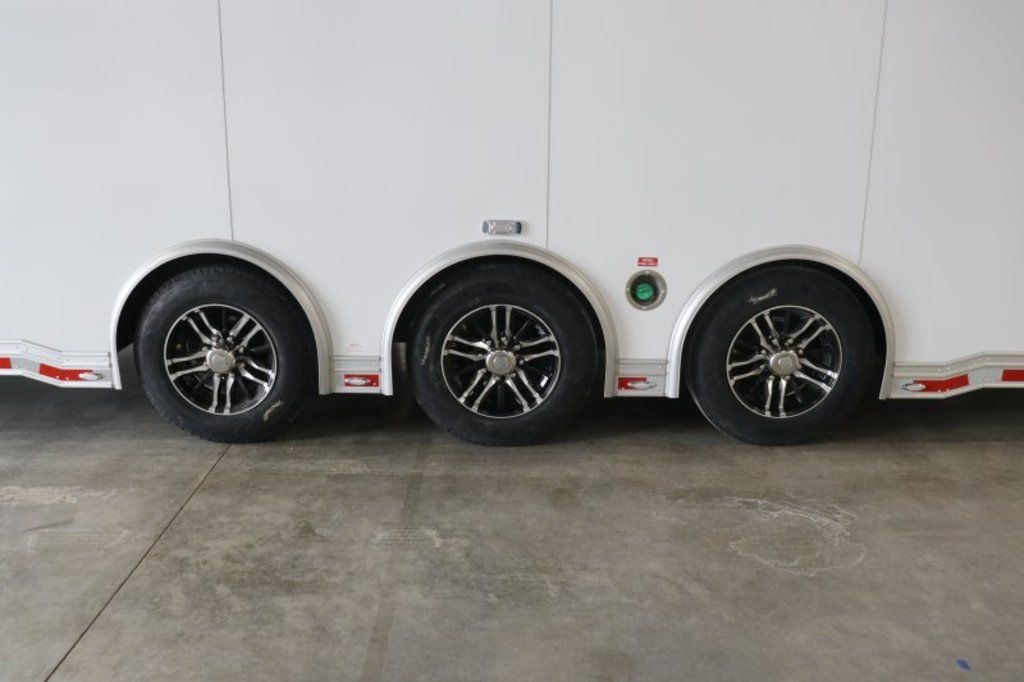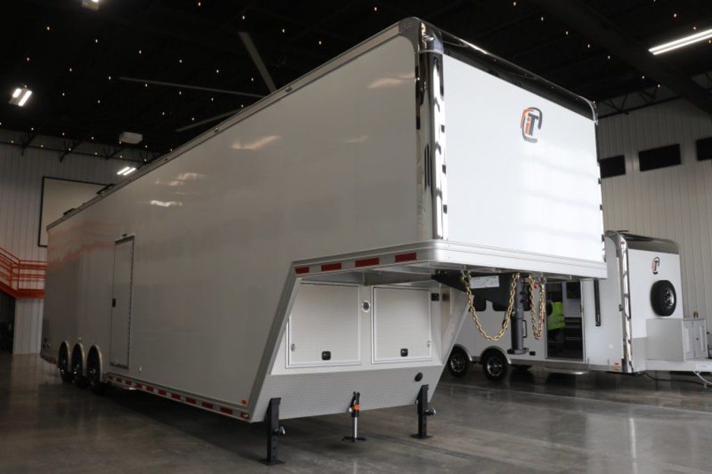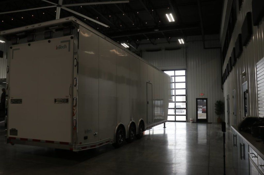 2026 42' inTech Sprint Car Trailer. Featuring A/C, Rear Privacy Doors, Wing Hangers, Tire Racks, Large Axle Rack, Roof Viewing Area and more. Call today. 214-807-1008 Features: Triple 7K Axles 9.5' Int Height .040 Screwless/Rivetless Aluminum Exterior - White .030 Screwless/Rivetless Aluminum Interior -White iCon Package, Black Anodized Interior Package, & Black Anodize Cabinet Trim Package Extruded Aluminum Floor, Ramp, & Ext 2 - 15K BTU A/C w/ Heat Pump - Low Profile (11.25") Wall Thermostat & Drip Drain Kits Rear Double Privacy Doors w/Windows & Shades Premium Cabinets -Med Charcoal Wheel Well Cabinets w/Adjustable Shelves & Carpet Behind C/S & R/S Upper Cabinets w/Top Hinged Doors Above Workbench w/Cabinets Below R/S Large Axle Cabinet Sprint Car Loading Package - Single Beam - (4) Trolleys - (2) Hoists - (2) Electric Cord Reels (2) Remote Holders Large Axle Rack - Holds (2) Rear Ends (2) Front Axles and (2) Bare Axles 2 - Top Wing Hangers 3 - Nose Wing Hangers 3 - Folding Tire Racks 1 - Folding Wheel Rack 48" Flip Up/Removable Workbench Wall Mounted Wheel Balancer Airline Full Prep Package - 1 Inlet - 3 Outlets Additional Airline/Nitrogen Outlet Enclosed 50' Retractable Air Hose Reel 50" 1080P LED TV - 120V - Wall Mounted Bunk w/Black Coin Flooring, Carpeted Walls & Removeable Ladder to Access (152 3/8" Bunk /52" Main Floor to Bunk / 62" Bunk to Ceiling) Attic Canopy Railing Prep Generator Prep Package With in Frame Fuel Tank - Diesel / 40 Gallon Fuel Tank - 35 Gallon Usable /Switch Panel for Gen Start - Fuel Gauge 10 Recessed D-Rings 36" Side Entry Door 50Amp Electrical & LED Lights 4 - Whelen 900 Series Flood Light Above Rear Ramp Door Stereo w/ Int & Ext Speakers Insulated Walls & Ceiling Aluminum Wheels & 215/75R17.5 Tires Wall Mounted Spare Wheel & Tire in Bunk HD Walk on Roof w/Viewing Railing Wall Mounted Ladder & 30 X 30 Roof Hatch to Access Roof Lowered Skirt w/ Reverse Beavertail Design 48" Beavertail Single Post Hydraulic Jack HD Rear Ramp Door w/Recessed Stainless Steel Latches Cast Corners w/ Stainless Steel Verticals & Radius Stainless Steel Rear Header & Posts Color Matched Rear Spoiler 11,000# Exterior Tow Ring Rear Caster Wheels & Skid Plates 78 1/4" Between Wheel Wells 90" W X 106" H Rear Ramp Door *Additional Photos Coming Soon Give us a call to learn more and reserve today. 214-807-1008 travis@flyingamotorsports.com Financing and Delivery available. "WE ARE RACERS LIKE YOU" Flying A Motorsports The #1 Intech Dealer Leading the Motorsports Transportation Industry - Since 1988