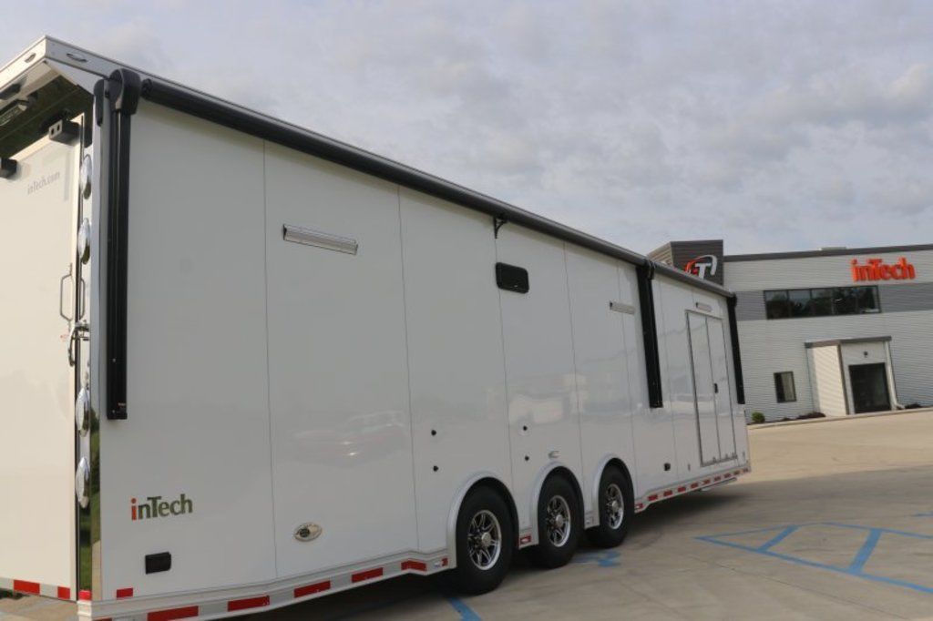 ON ORDER 2026 34' inTech Icon Race Trailer featuring Triple 7K Axles, 2 Awnings, Workbench, Double Side Entry Door and more. Call today 903-482-9335 *On Order photos of similar trailer, options and selections may vary. Features: Triple 7K Axles 7.5' Int Height .040 Screwless/Rivetless Aluminum Ext- White .030 Screwless/Rivetless Aluminum Int- White Icon Package Extruded Aluminum Floor, Ramp, & 4' Ramp Extension Premium Cabinets - White 8' Straight Base Cabinet L-Shaped Upper Cabinets w/Side Hinged Doors 1/2 Dresser Closet w/Shelf & Hanging Bar 11' & 21' Weathershield - 12V Power Awnings Airline Full Prep Package - 1 Inlet - 3 Outlets 48" Flip-up Workbench w/Int & Ext Mounting Locations Prep for Future TV Stereo w/Int Speakers Winch Plate in Floor for Future Winch Installation Airline Track Tie-down on Main Floor Wall Mounted Airline Track Tie-down 4 - Recessed D-Rings 34" Carpet Wainscot 60" Double Side Entry Door w/Aluminum Slide Out Step 50Amp Electrical & LED Lights 3 - LED Scene Lights Under Awnings Insulted Walls & Ceiling 2 Roof Vents Braced & Wired for Future A/C Aluminum Wheels & Spare Wall Mounted Wheel & Tire Color Matched Tongue Box w/2 Compartments - Top Compressor / Bottom Generator Slide for Future Portable Generator 4500# Power Jack Lowered Skirt w/ Reverse Beavertail Design 48" Beavertail Cast Corners w/Stainless Steel Verticals & Radius Stainless Steel Rear Header & Posts Rear Caster Wheels & Skid Plates Color Matched Rear Spoiler 81 1/2" Between Wheel Wells *On Order options and selections may vary, photos of similar trailer. Give us a call today to learn more. 903-482-9335 Financing and Delivery available. Flying A Motorsports travis@flyingamotorsports.com "WE ARE RACERS LIKE YOU" Flying A Motorsports The # 1 Intech Dealer Leading the Motorsports Transportation Industry - Since 1988