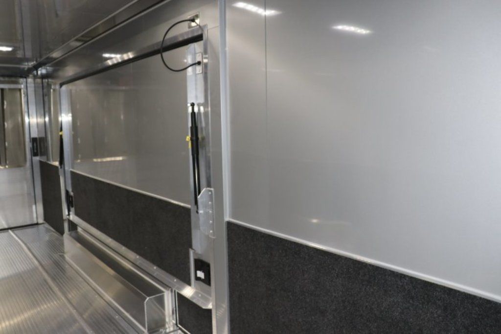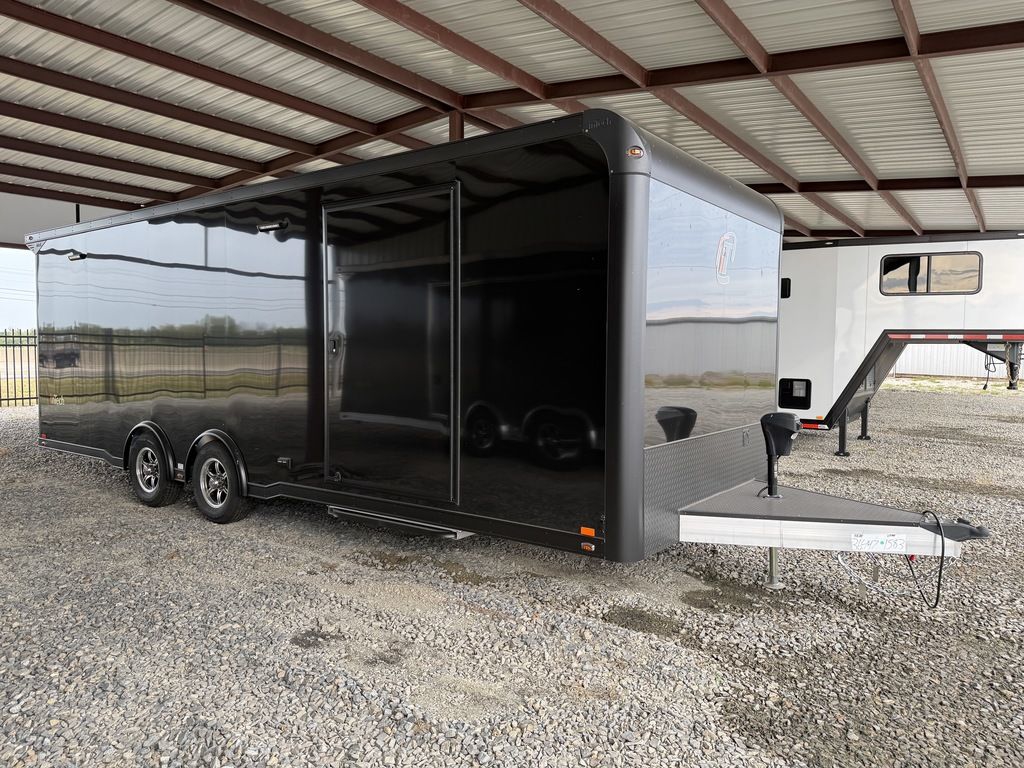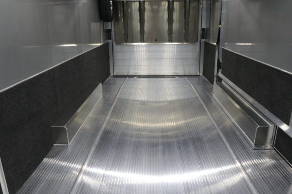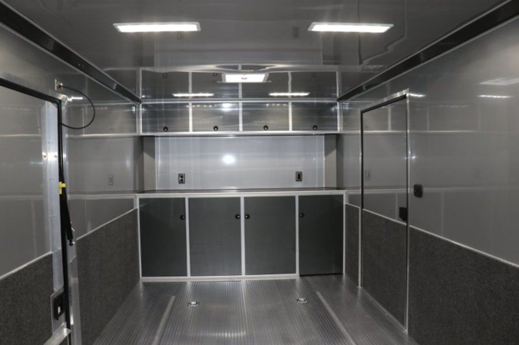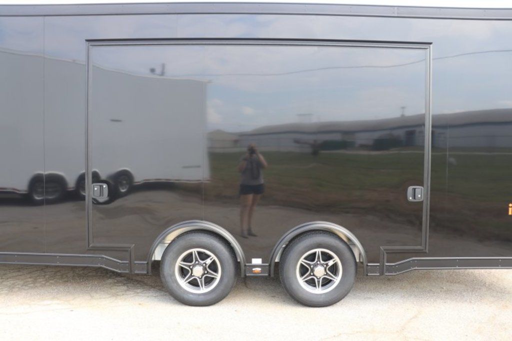 SELECTED OPTIONS-5000# Winch w/ Wireless Remote & Synthetic Rope- 48" FULL WIDTH RAMP EXTENSION- 2 ROWS OF AIRLINE TRACK ON FLOOR- CARPET ON INTERIOR WALLS 34" HIGH- FULL ACCESS ESCAPE DOOR- POWER JACK- JACK INSTALLED TOWARD REAR OF TONGUE- ATP TONGUE COVER- BLACK ANODIZED EXTERIOR PACKAGE