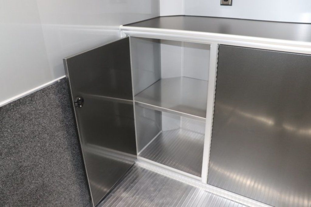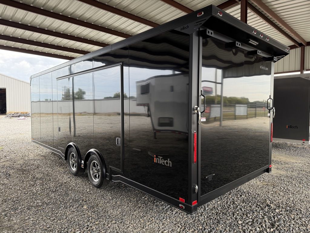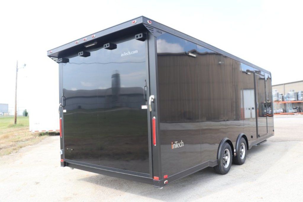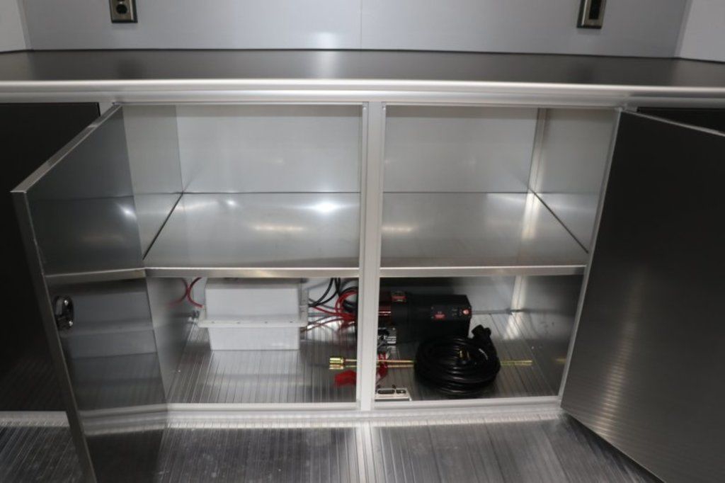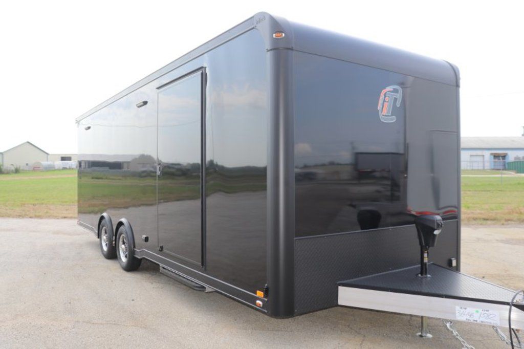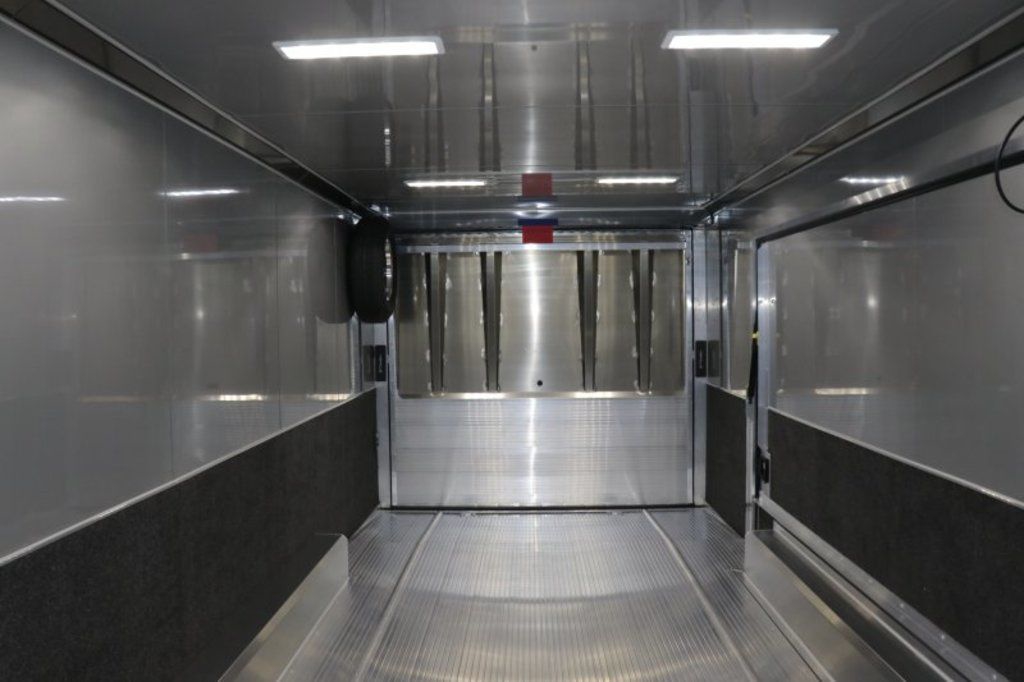 SELECTED OPTIONS-5000# Winch w/ Wireless Remote & Synthetic Rope- 48" FULL WIDTH RAMP EXTENSION- 2 ROWS OF AIRLINE TRACK ON FLOOR- CARPET ON INTERIOR WALLS 34" HIGH- FULL ACCESS ESCAPE DOOR- POWER JACK- JACK INSTALLED TOWARD REAR OF TONGUE- ATP TONGUE COVER- BLACK ANODIZED EXTERIOR PACKAGE