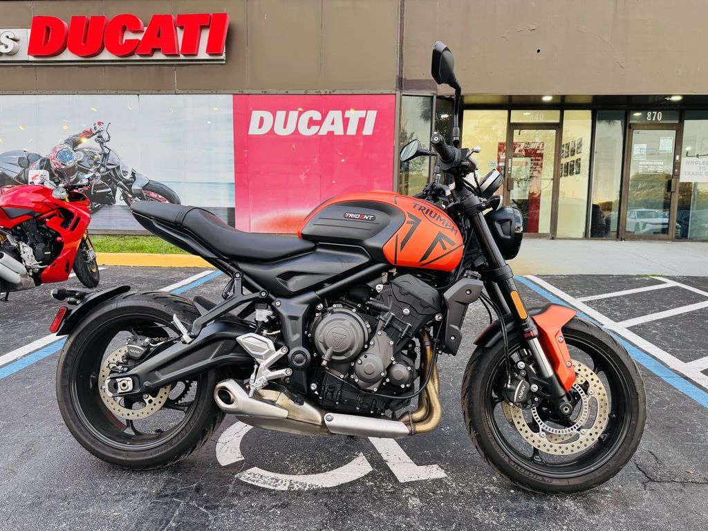 Price: $8,720.00 2023 Triumph Trident 660 Matte Baja Orange Matte Storm Grey Horizontal In-line 660 Year: 2023 Model: Trident Make: Triumph Condition: Used Contact Us Credit Application