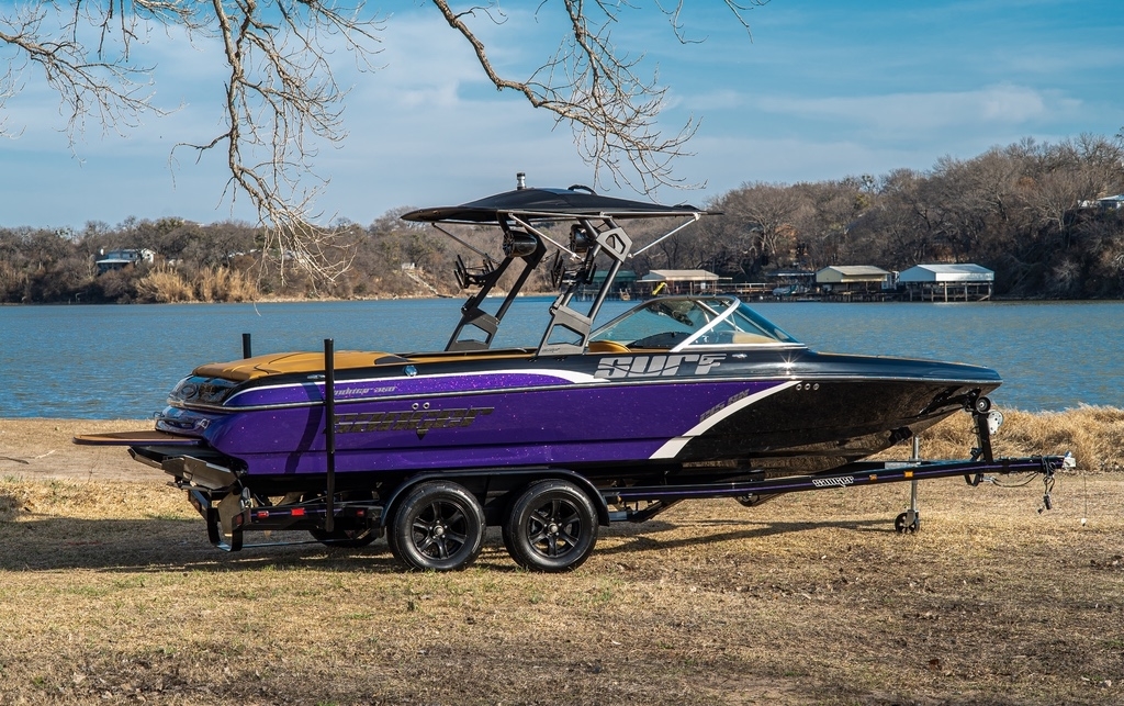ALL THE VALUE AN VERSATILITY OF THE S MODEL, PLUS THE ADDITION OF OUR QUICK SURF ADJUSTABLE WAVE SYSTEM. THIS UNIQUE SYSTEM IS NOT JUST FOR SURFING, IT HELPS MAKE THE RIDE SMOOTHER IN ROUGH WATER AND ALSO CAN HELP TO RESHAPE THE WAKEBOARD AND SLALOM WAKE, TOGETHER WITH LEVELING AN UNEVEN LOAD TO MAKE YOUR DRIVE SMOOTH AND ENJOYABLE. THIS MODELS ALSO INCLUDES THE DELUXE APOLLO TOWER, EXTRA LARGE ALL STAINLESS STEEL 88″ BIMINI TOP, WITH SURFBOARD STORAGE AND DELUXE SURF PLATFORM.