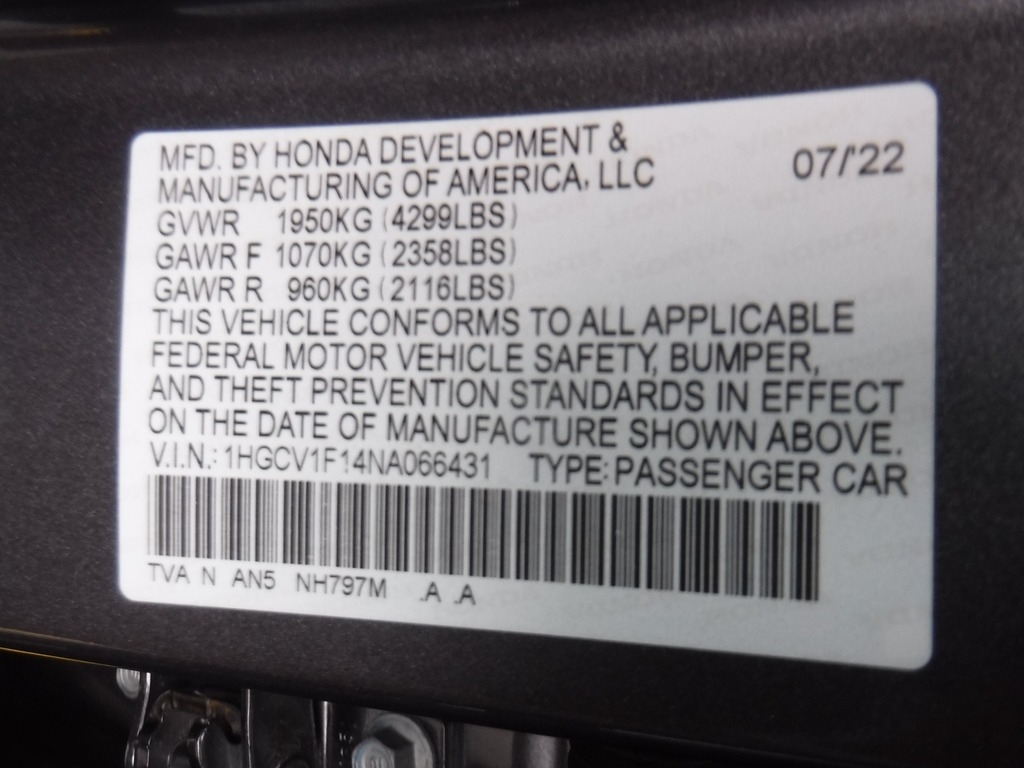 • VIN: 1HGCV1F14NA066431