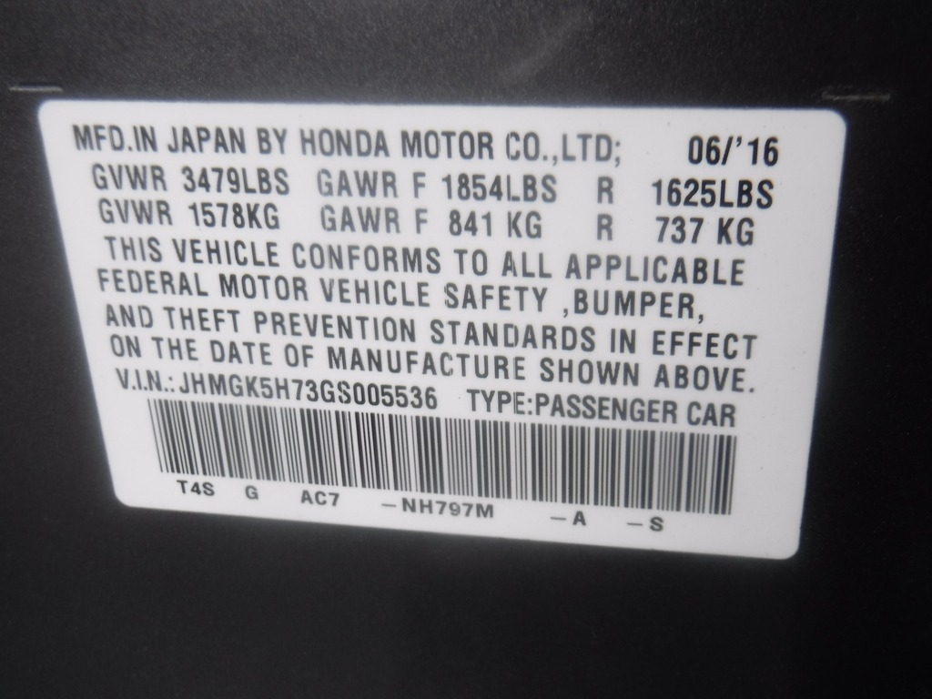 • VIN: JHMGK5H73GS005536