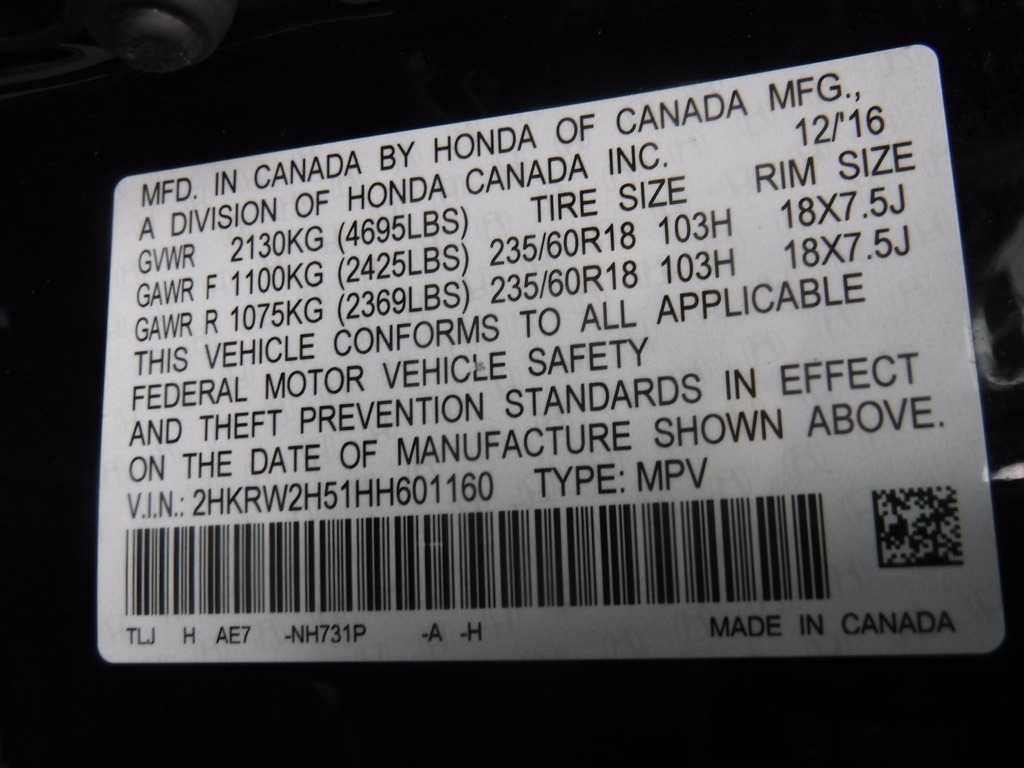 • VIN: 2HKRW2H51HH601160