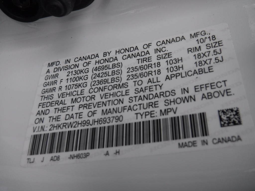 • VIN: 2HKRW2H99JH693790