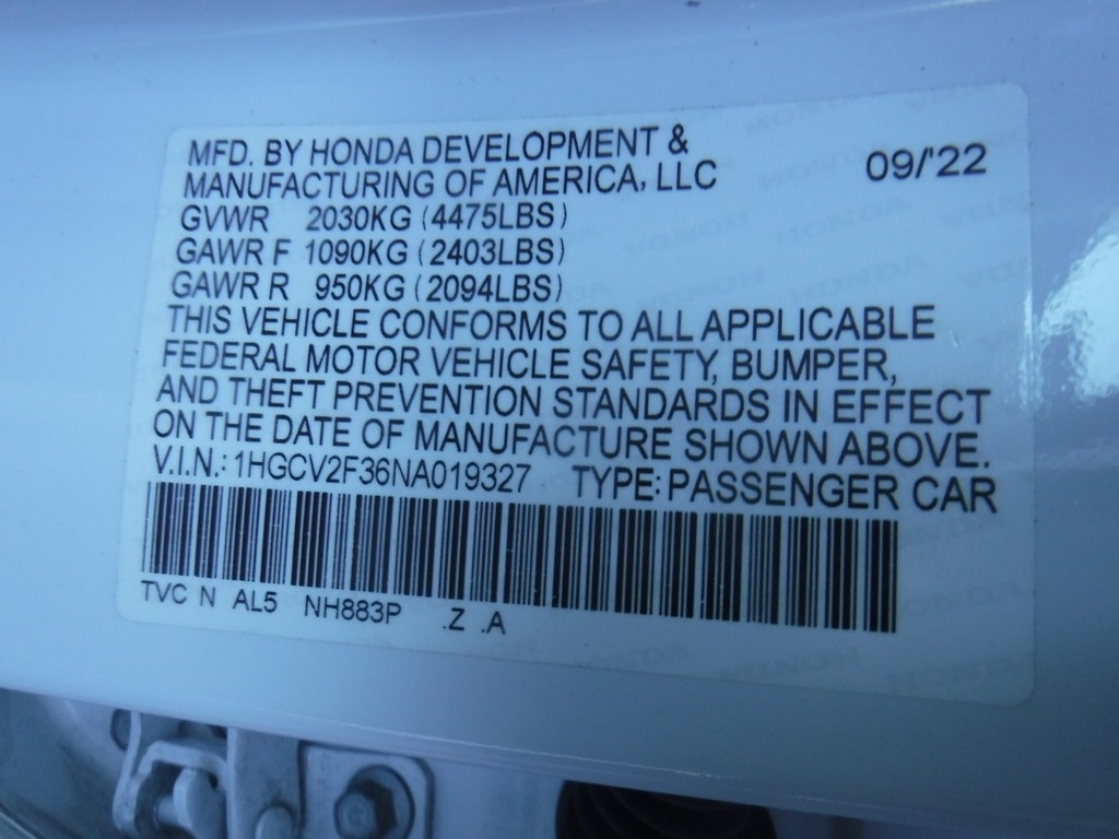 • VIN: 1HGCV2F36NA019327