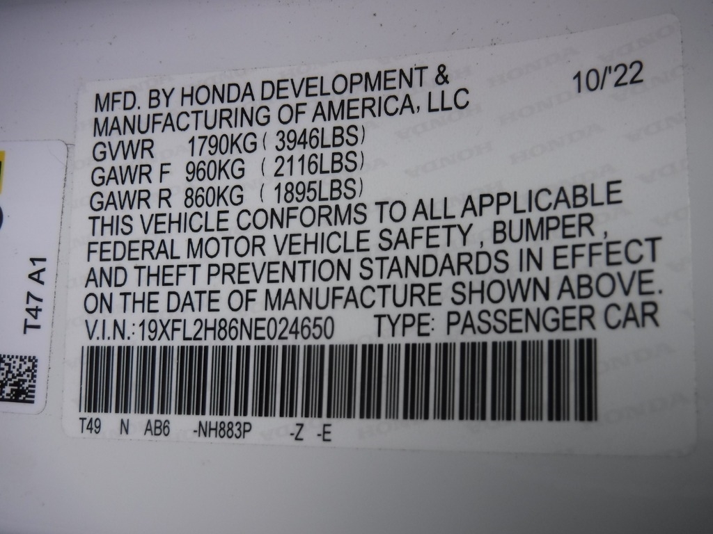 • VIN: 19XFL2H86NE024650