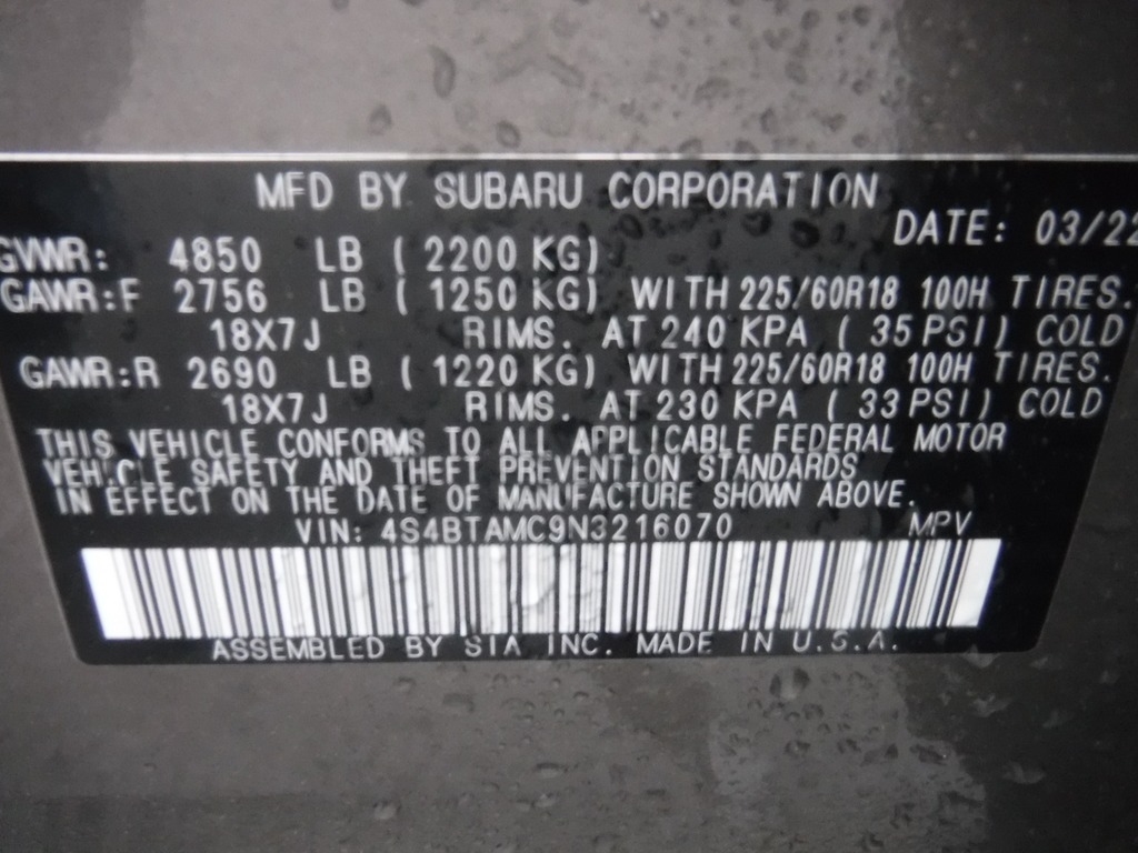 • VIN: 4S4BTAMC9N3216070