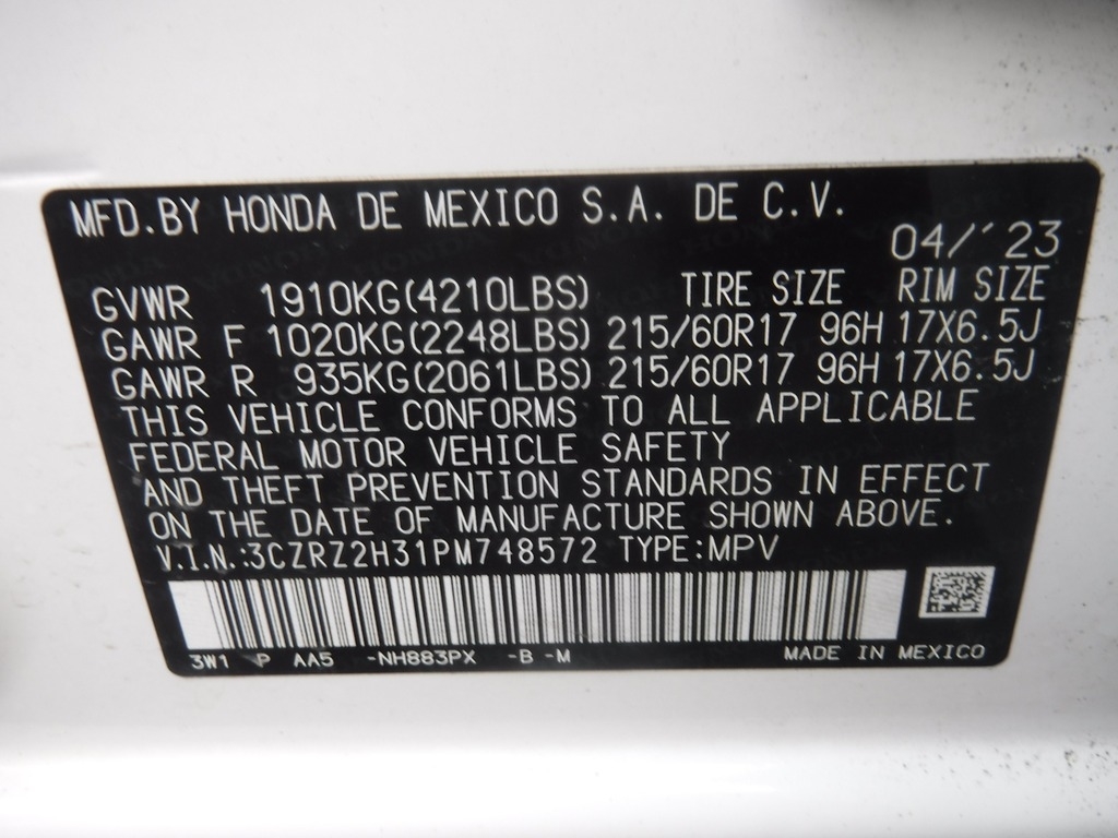 • VIN: 3CZRZ2H31PM748572