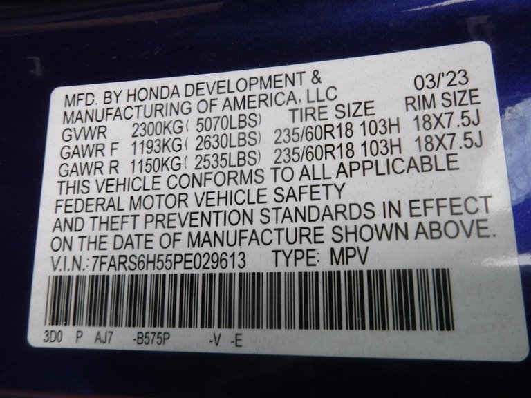 • VIN: 7FARS6H55PE029613