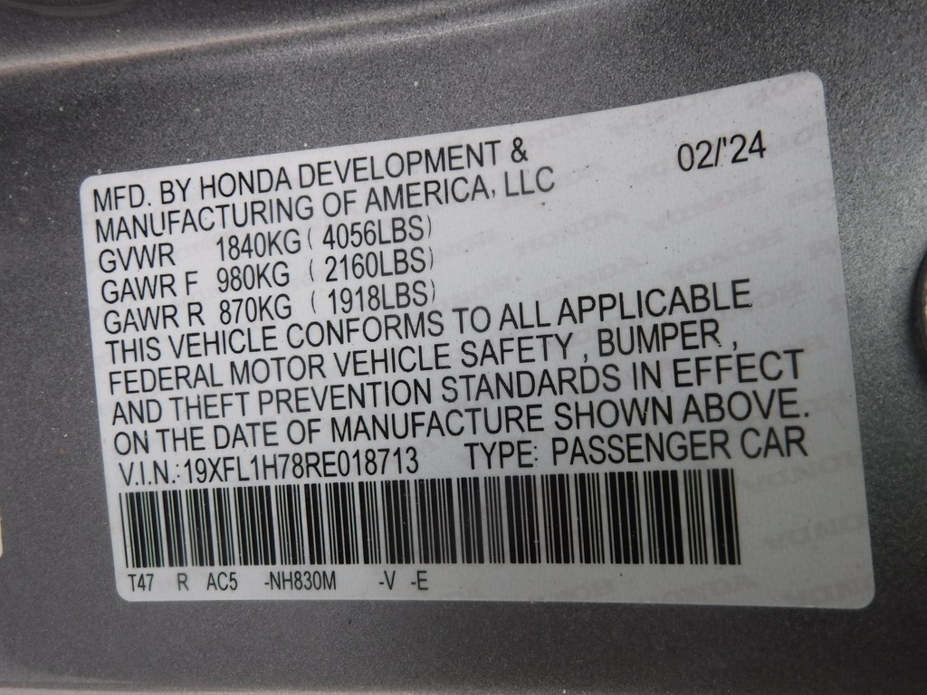 • VIN: 19XFL1H78RE018713