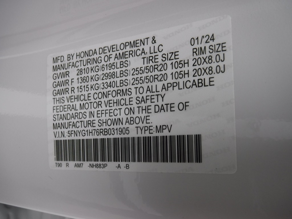 • VIN: 5FNYG1H76RB031905