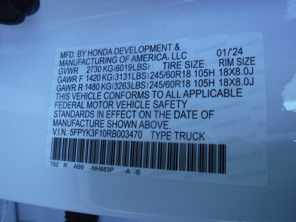 • VIN Number: 5FPYK3F10RB003470