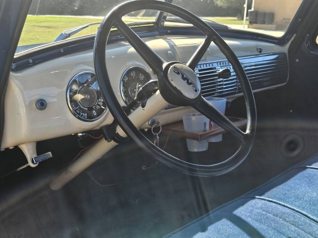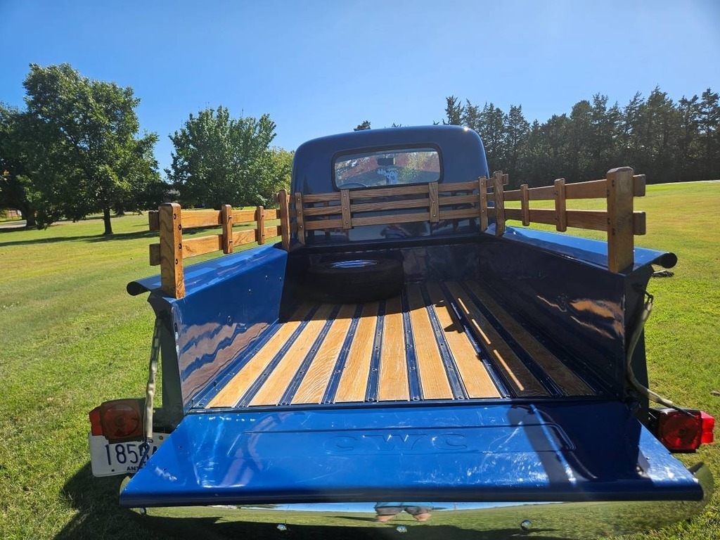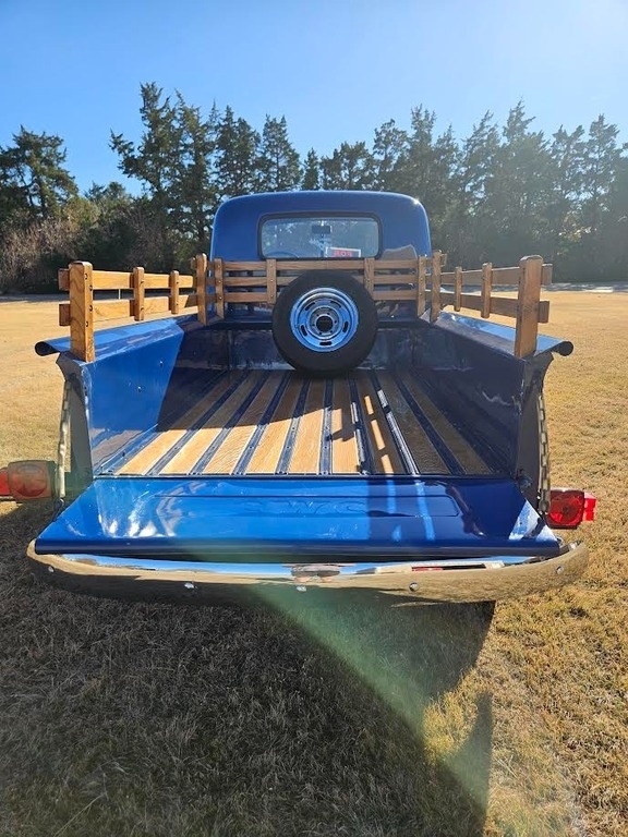 with oak wood floor and oak sideboards that give it an authentic classic-truck