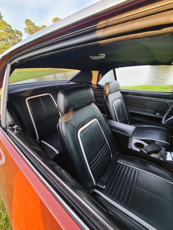 This 1967 Chevrolet Camaro is powered by a 355ci V8 Engine with MSD Fuel Injection, paired with an Automatic Transmission with B&M Shifter. This Camaro has a Sunburst Orange Exterior with a Black and Silver Leather Interior. This Coupe has been garage kept and non-smoking.