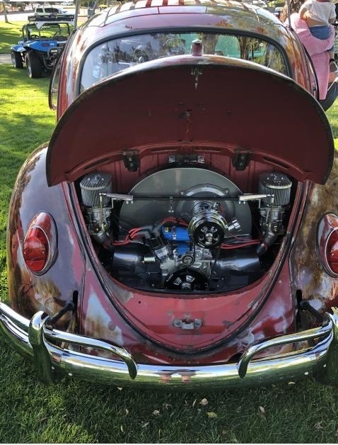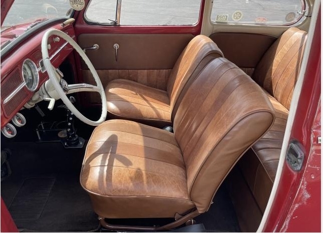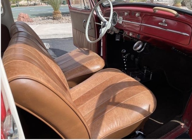 This 1965 VW Type 1 Bug is powered by a 2180cc Engine, Paired with an Automatic Transmission and only 500 Miles on the new Motor. Proudly Shown with Red Patina Exterior Paint with Brown Interior.