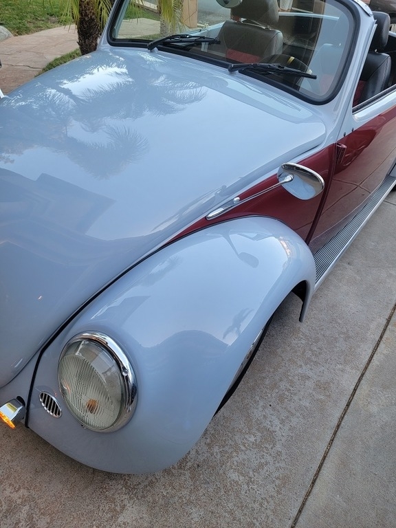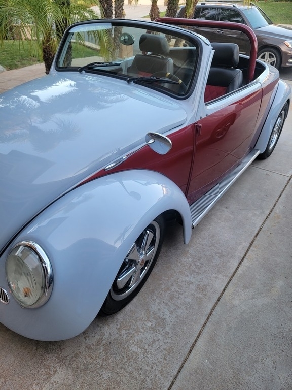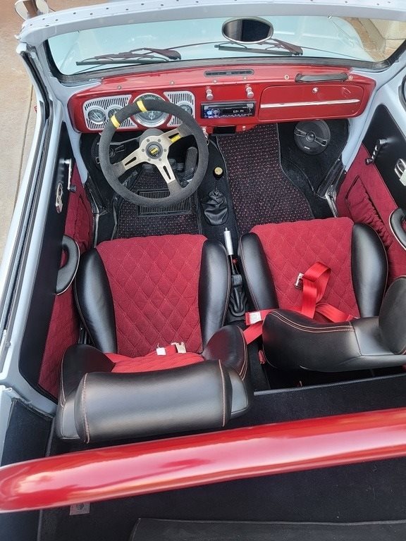This 1967 Volkswagen Beetle is powered by a Newer 1600cc Gas Engine, paired with a 4-Speed Manual Transmission with Only 1,800 Miles. This Beetle Convertible has a Grey & Red Exterior with Red/Black Interior. Owners have stored the Beetle in a garage and are non-smokers.