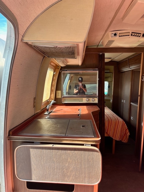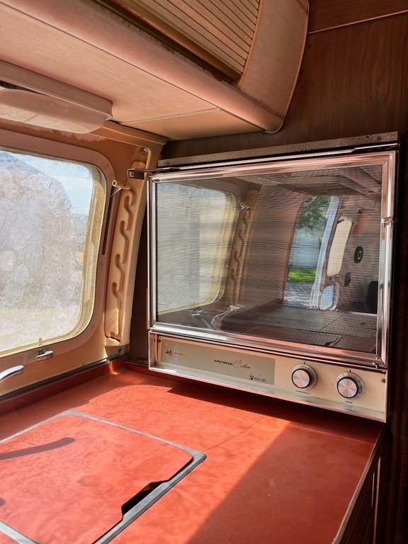 “It’s ready to tow. Lights all work. It needs a refrigerator and some work on the water lines. I don’t know about the water heater. The stove, oven, and furnace work. A/C works. One of the windows is cracked.”