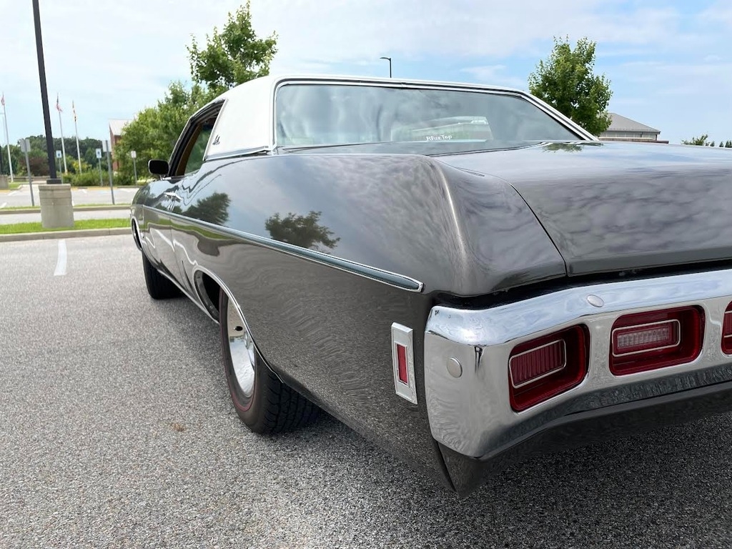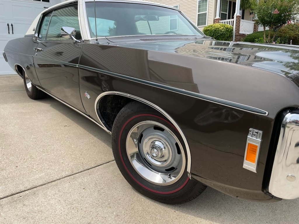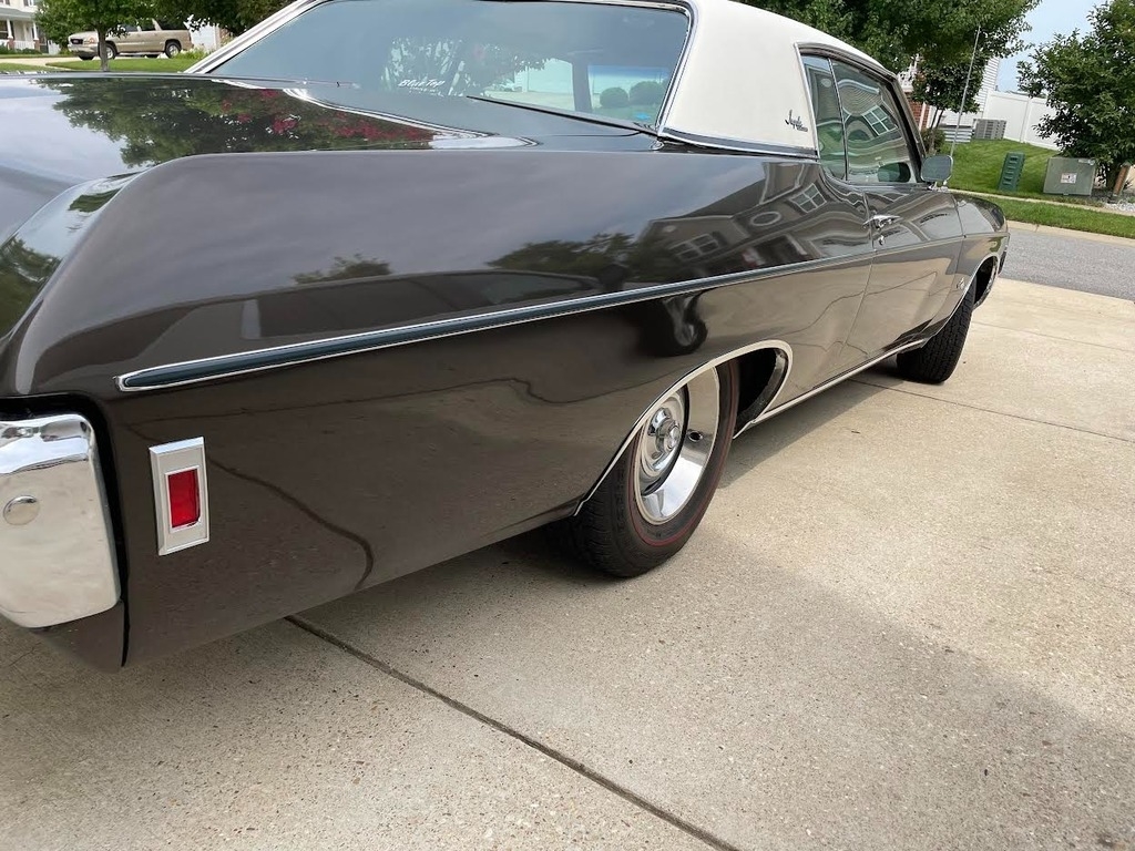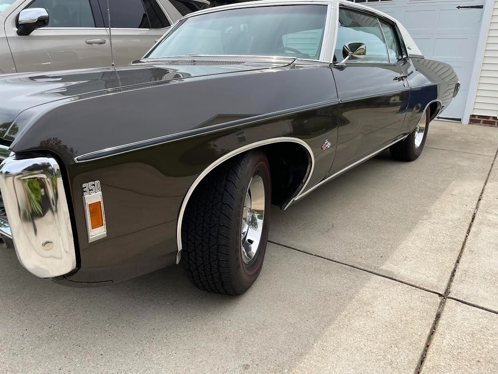 This very original 1969 CHEVROLET IMPALA CUSTOM LIMITED 2 DOOR HARD TOP has documented milage. The interior is all original, seats and carpets except for new head liner. The color is Champagne/Burnished Brown with vinyl top. The car has new, original color paint, and new vinyl top. All sheet metal is as the car was new including floor and trunk panels, except for a small rust repair on the left lower quarter panel. All original bright bumpers and chrome. The engine is the original 350 Cubic-inch V8, 300HP with TH350 3 speed trans with an added MSD Throttle Body fuel injection carburetor and electronic ignition with new gas lines. All belts and hoses are new. All new dual power cylinder and brakes and brake lines with new front disk brakes and power steering. The new A/C blows cold. All new 2 1/8” Flowmaster 40’s mufflers and exhaust pipes. New shocks and bushings. Like new 15” GOODRICH Red Line tires. Tinted glass all around.