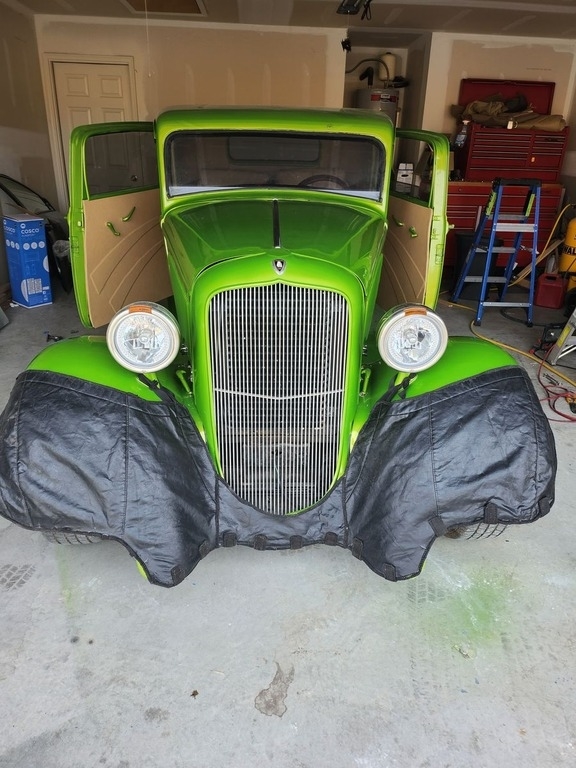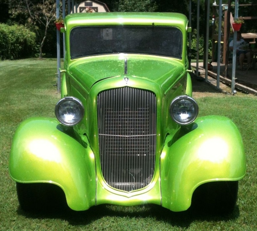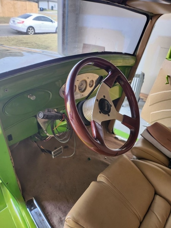 This 1933 Plymouth is Powered by a 350 CI V8 Engine Paired with an Automatic Transmission. Shown With a Limelight Green Exterior with a Tan Interior.