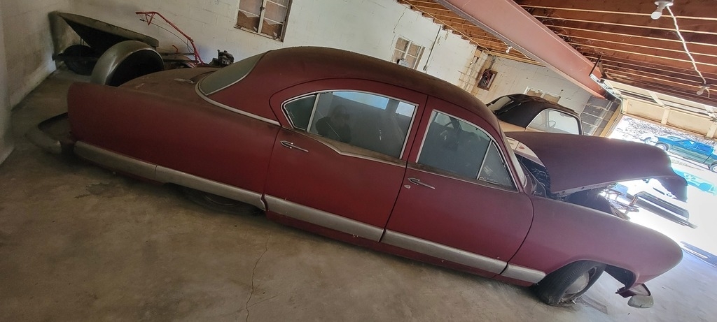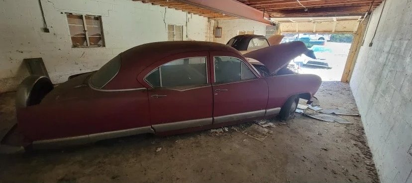 “1953 Kaiser Frazer garage kept for over 20+ years. The car has not been driven in 20+ years. The car weighs 3,260 pounds. Still in really good shape. Car has no rust. Interior is in pretty good shape. Black leather interior with red carpet. Interior seems to have been replaced years ago. Has spare tire on rear of car. Car has low original miles. Nothing is missing on the inside of the car. Car is sold as is, no returns. Clear title in hand.”