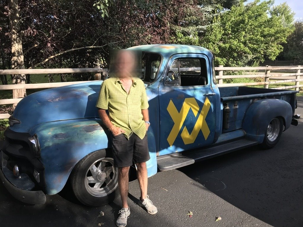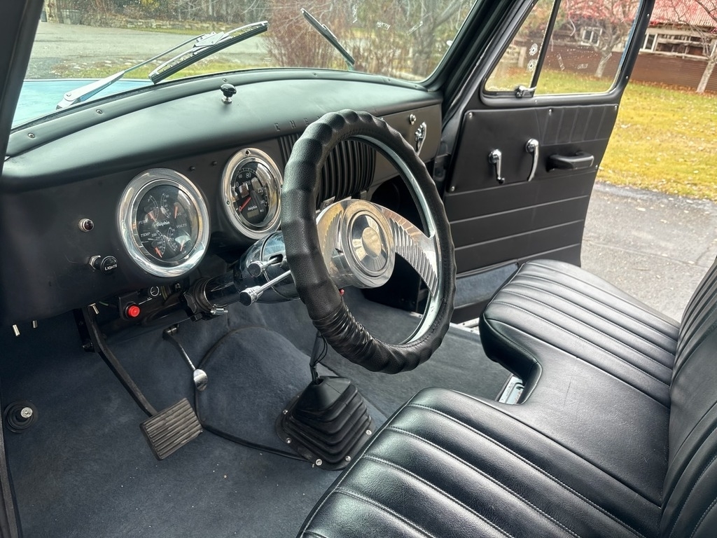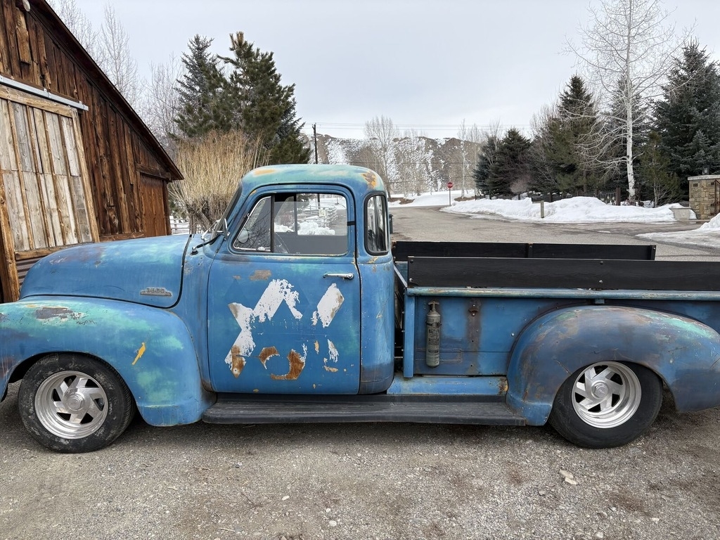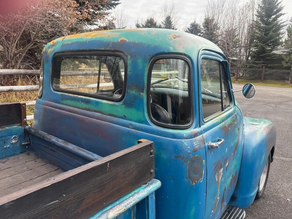 sharp, powerful, professionally built ’54 Chevy Stepside sitting on a Jaguar