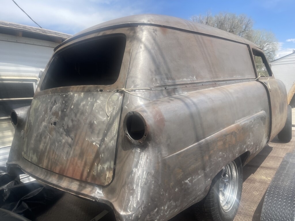 “Classic American Delivery Wagon Project car. Disk brakes on the front, with a 9” ford rear end. Body is striped and almost ready for paint. Power window and lock kits. Choice of 302 ho automatic or 302 ho manual 5 speed. Painless wiring kit for engine ecu. Louvered hood. Good Crome. American mags”