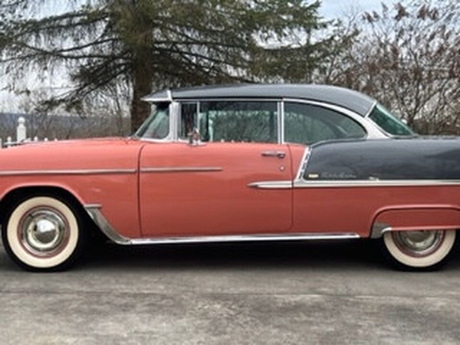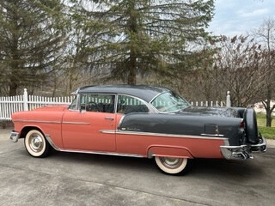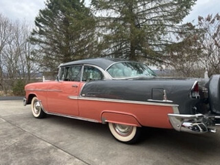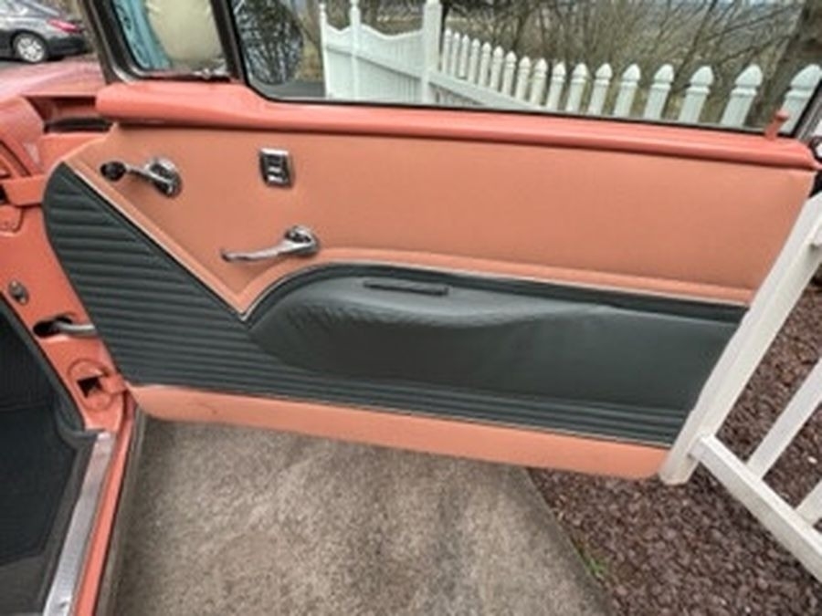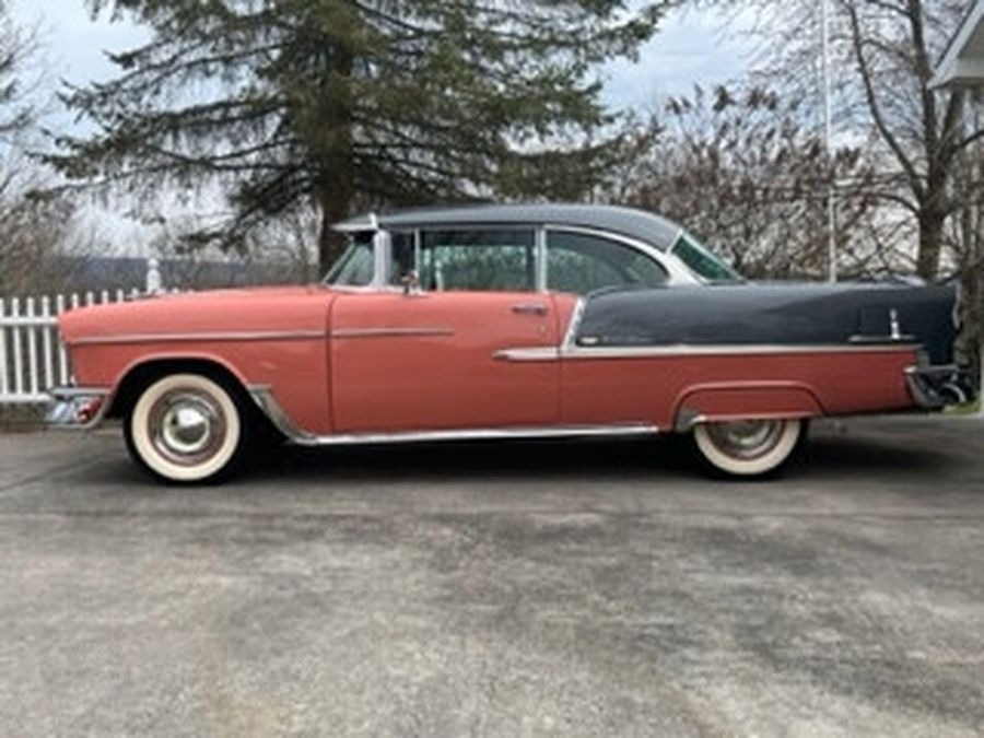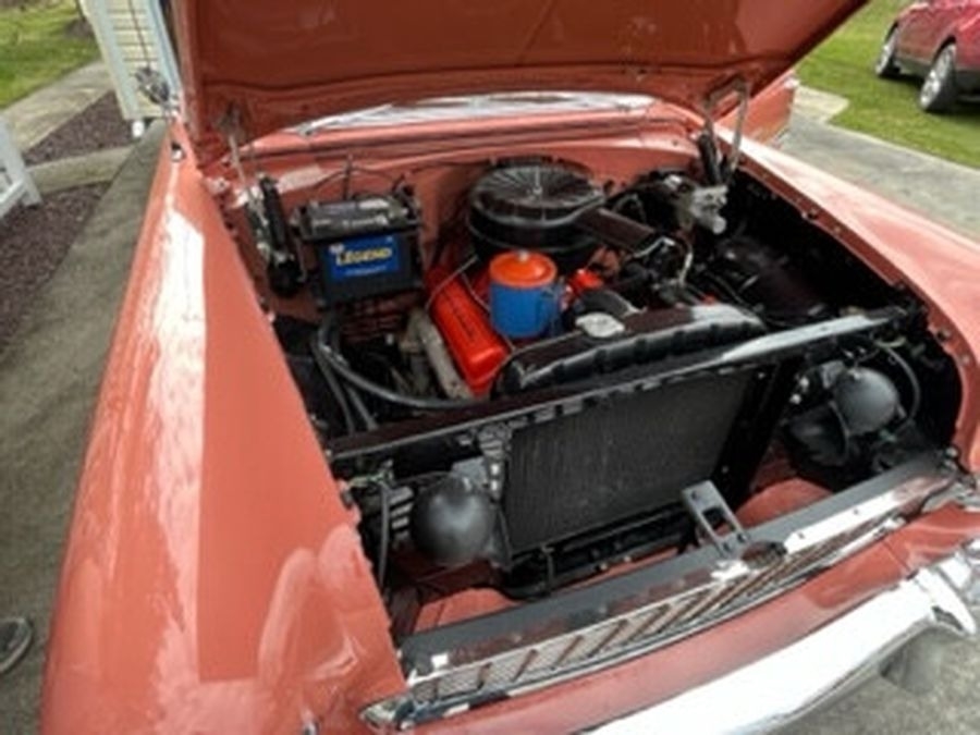 This 1955 Chrysler Bel Air is powered by a 265 V8 with Power Pack Gasoline Engine, paired with an Automatic Transmission. This Bel Air has a Salmon and Grey Exterior with a matching Interior. Garage Kept.