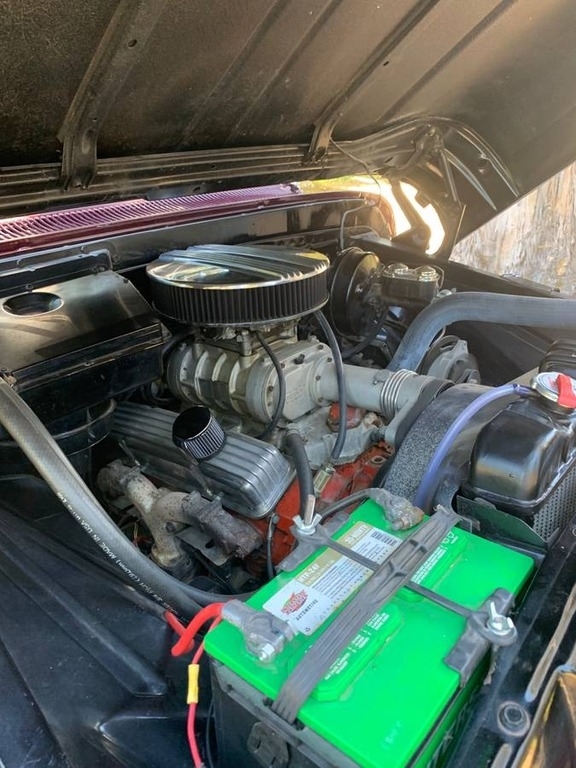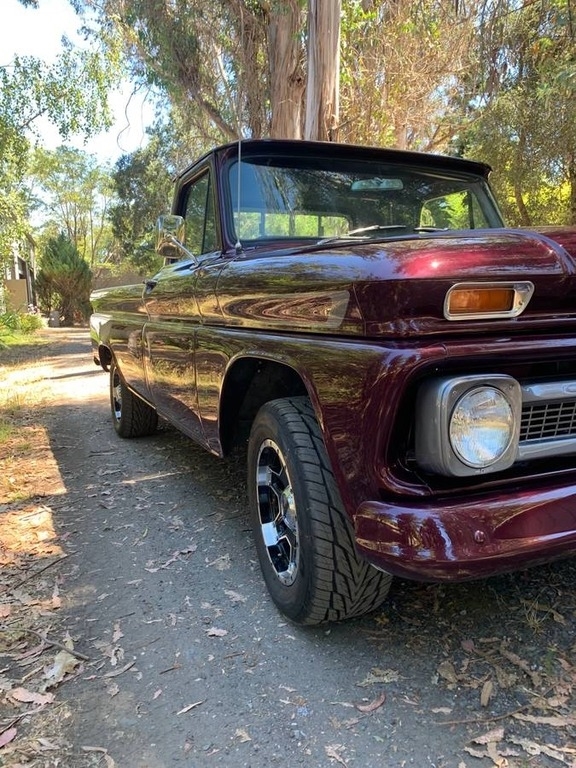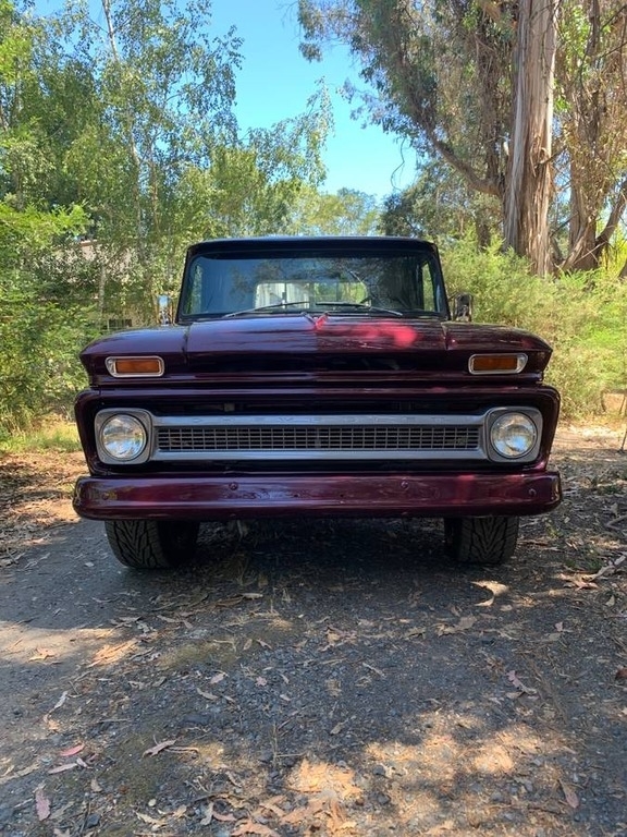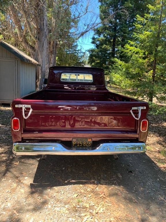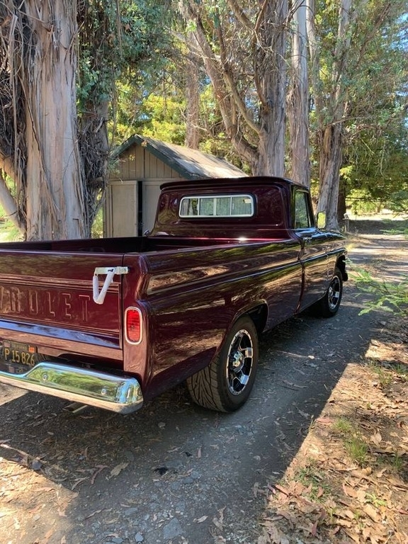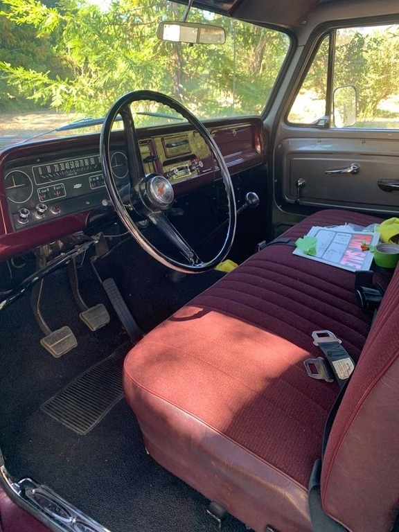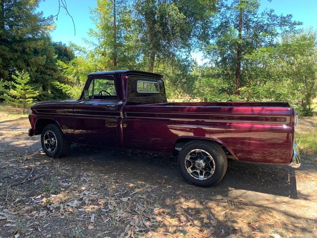 This 1964 Chevrolet C/K 20 Series Pickup is powered by a crate 350 v8 (30,000 Miles) gasoline engine paired with a 4-speed manual transmission with granny low. This Chevy C/K 20 is shown with a burgundy berry pearl with pewter pearl striping and a matching interior.