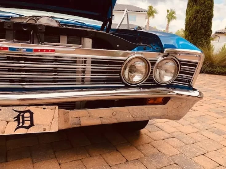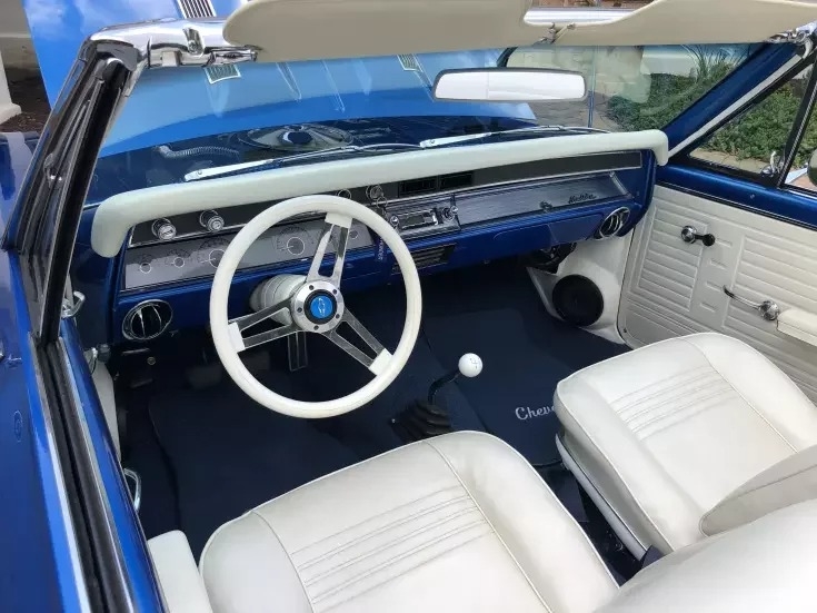 This 1967 Chevrolet is powered by a Big Block 454 CI Engine, paired with a 4 Speed Manual Transmission. This Chevelle has a Blue Exterior and a White Interior.