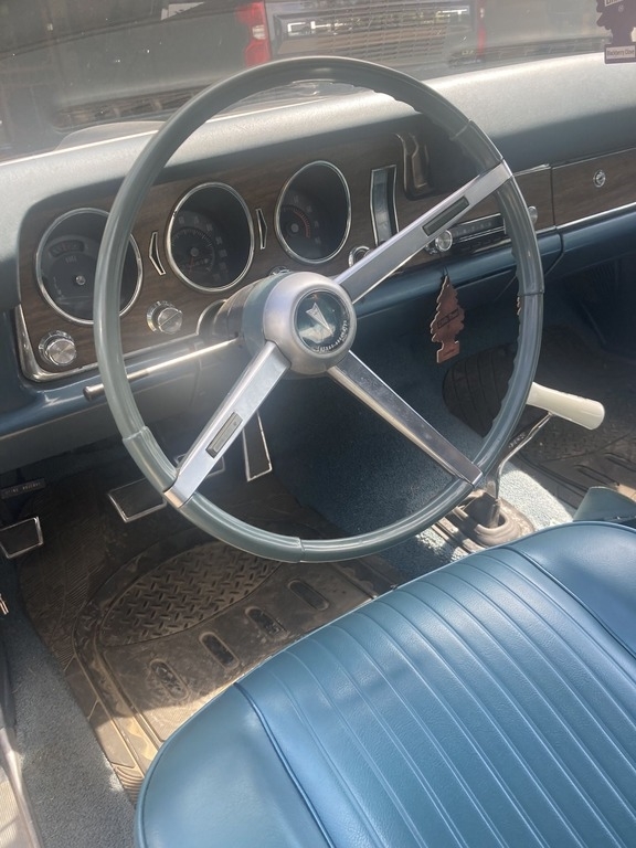 This GTO is powered by a 400 V8 engine paired with a 4-speed manual transmission. The odometer reads 37,000 miles and is shown with a blue exterior and a blue interior. This vehicle has been well-maintained.