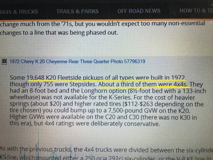 RARE and truly one-of-a kind '72 Chevy K20 long box VIN CKE242J154454 (C=Chevy, K=4x4, E=V8, 2=3/4 ton)