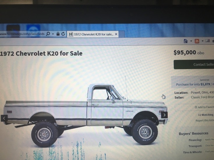 Seller’s Notes: Autotraderclassics currently has over 150 '72 C/K trucks advertised across the nation with ONLY TWO K20's listed and NONE on Ebay Classics.