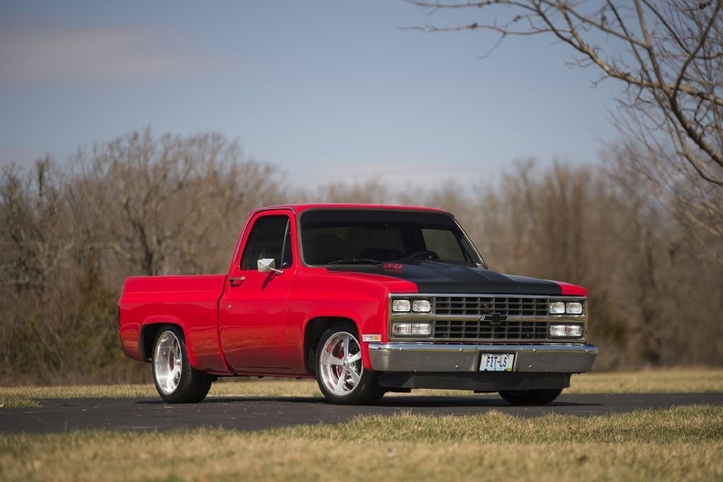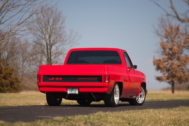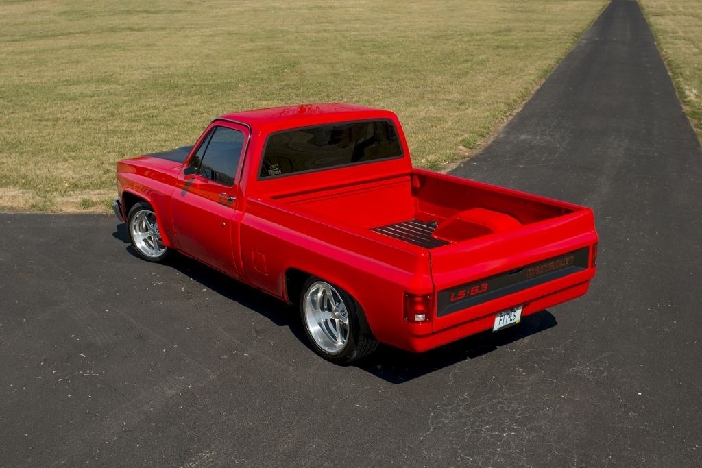 This 1986 Chevrolet C10 Square Body Custom is powered by a 5.3 LS V8 motor with ONLY 4,200 miles and many aftermarket upgrades: including a Spectre filtration; Fast VSX manifold with custom laser-cut engine covers; twin fanned alum radiator paired with a 4L60E Automatic transmission.
