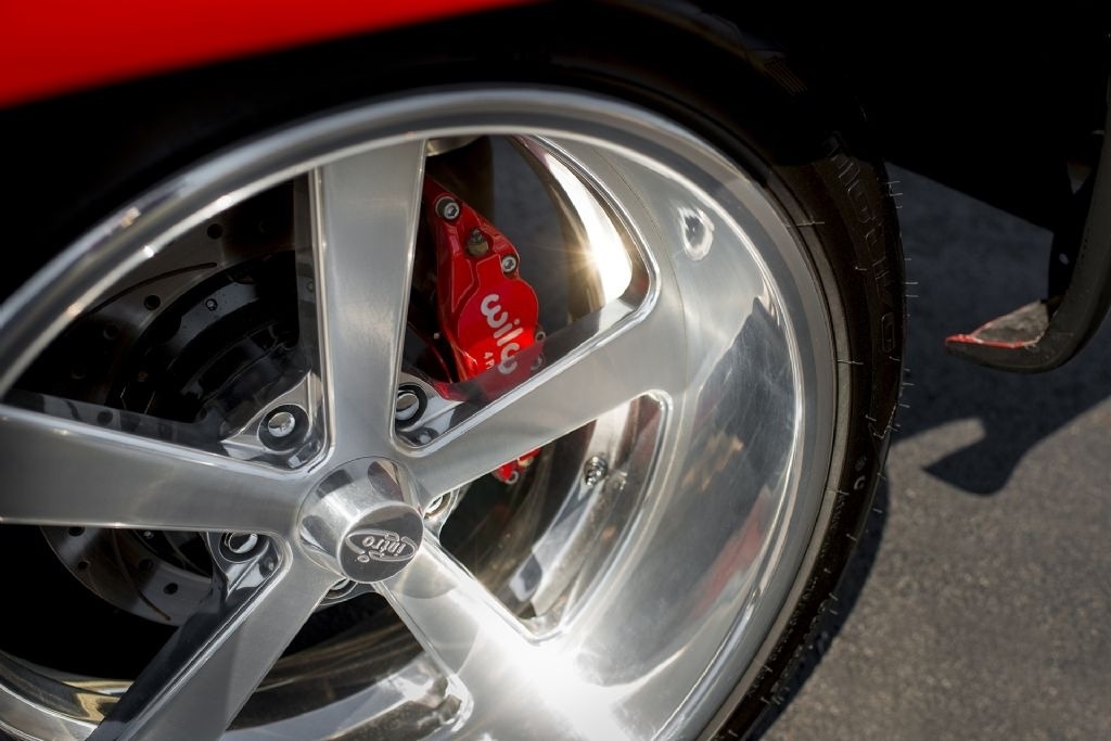 It is shown in Dupont Rare Red complimented with handcrafted black leather with red stitching upholstery.