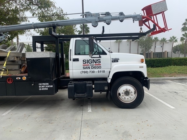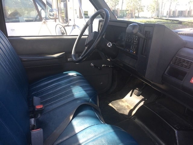 The truck is a 1993 GMC TOPKICK, California Carb Compliant gas 366 fuel injection engine, automatic Allison transmission. Runs well, good brakes, news tires, newer bed, newer paint. No need for Commercial Driver’s License. Setup with many tool bins and racks for sign work. Built in acetylene O2 torch cylinder storage. Nice truck