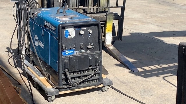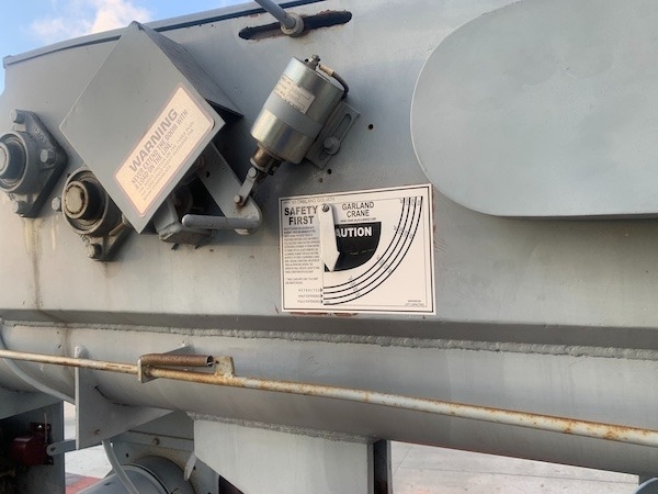 GARLAND 80 foot sign crane max weight 4800 pounds, one man basket, manual outriggers. Load line. Runs well, has 2 12V D8 batteries, and a great Miller Charger welder.