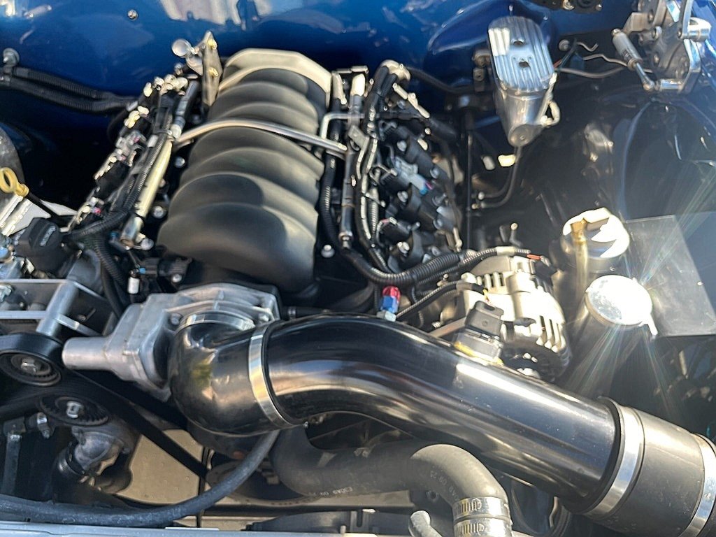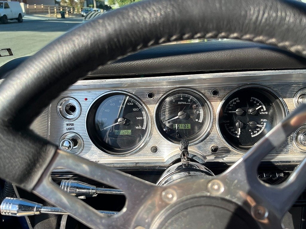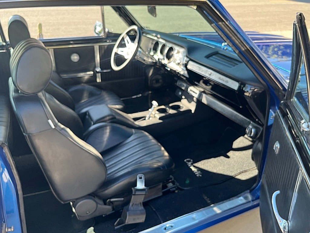 This Chevelle is powered by a new LS3 crate motor paired with an automatic 4L603 transmission. It had 80,000 miles on the original car before restoration and approximately 2,000 miles after the restoration. It is shown with a blue exterior and a black interior. This vehicle has been garage kept and well-maintained since.