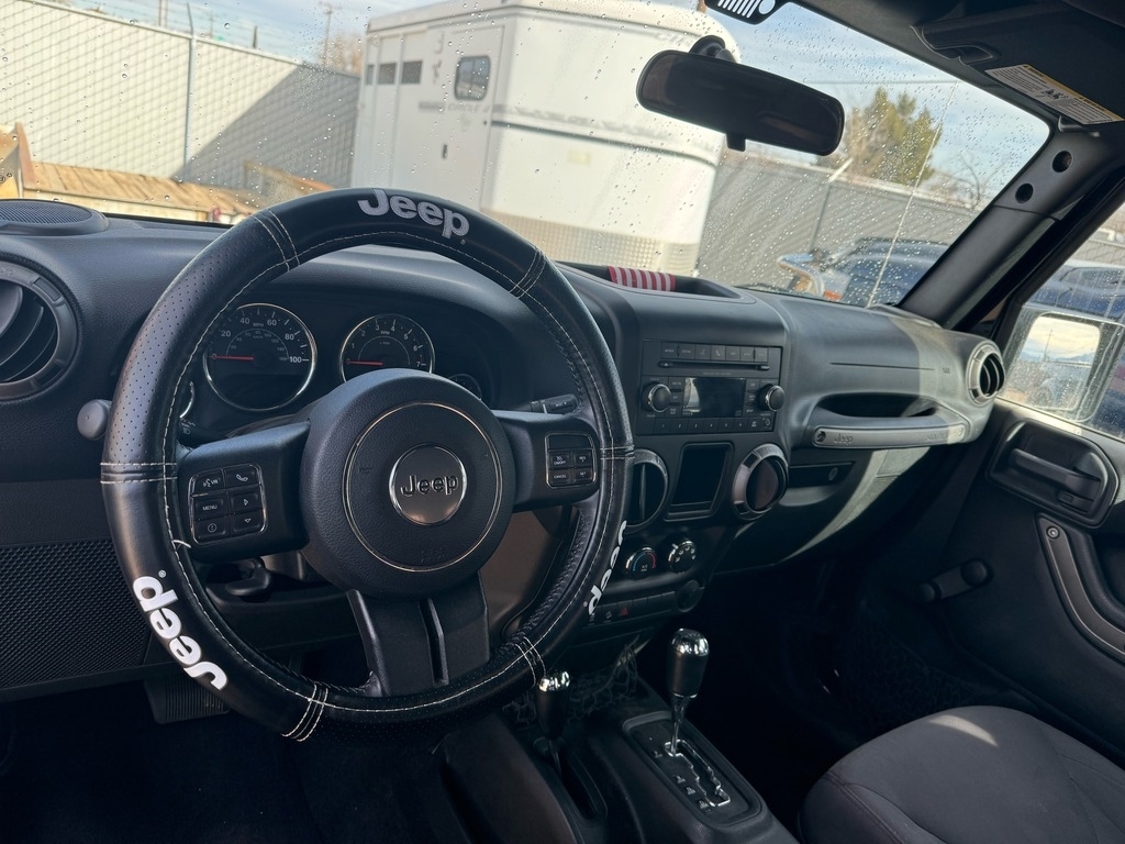 This 4-door Jeep Wrangler is powered by a 3.6L V6 engine paired with an automatic transmission. It has 40,300 miles and is shown with a black exterior and a black interior. This vehicle has been non-smoking and pet-free.