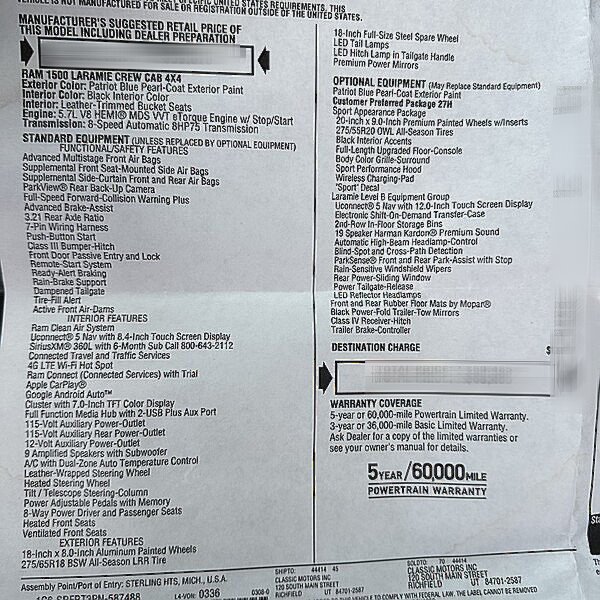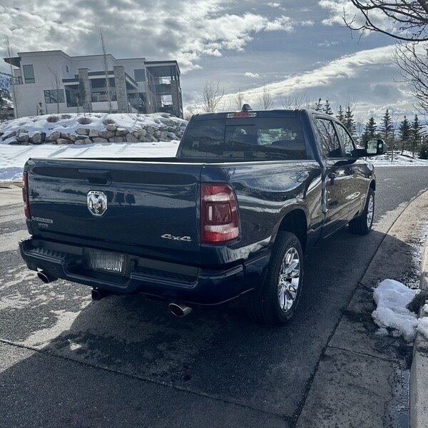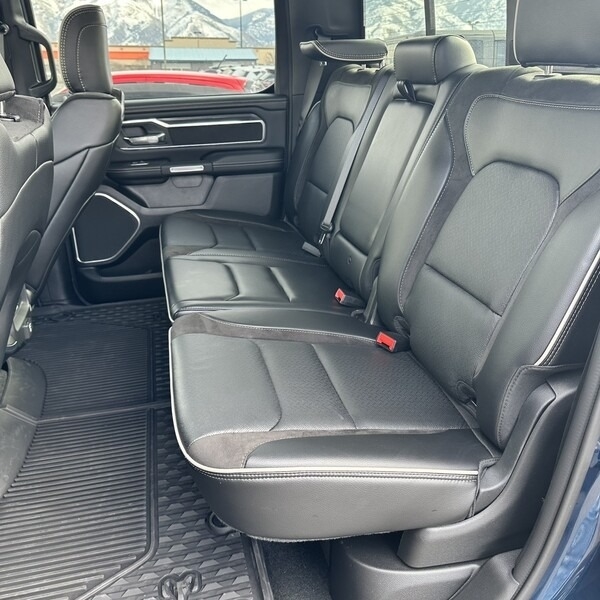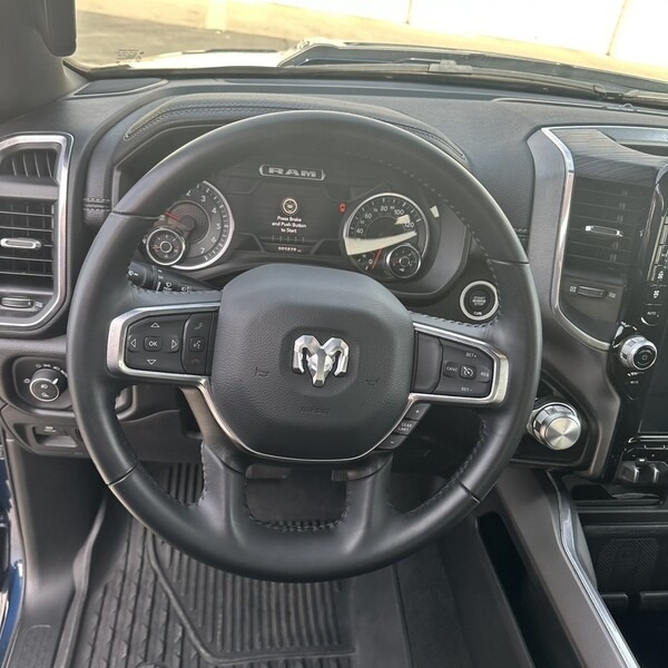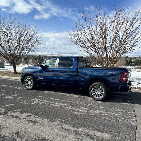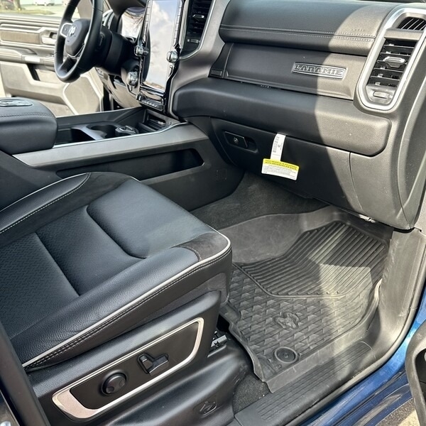 This Ram is powered by a 5.7L V8 HEMI Engine paired with an 8-Speed Automatic transmission with only 6,400 Miles. Shown in a Patriot Blue Exterior and Black Leather Interior the Ram has been Well maintained and garage kept.
