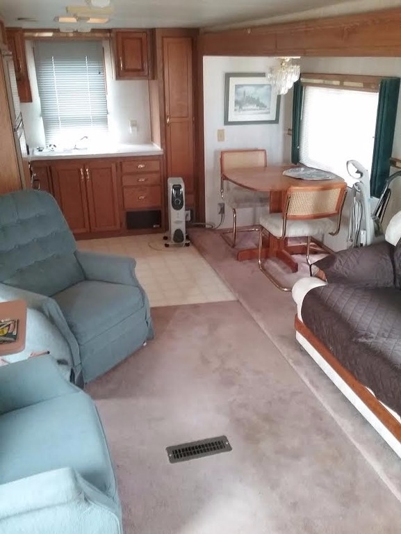 This 1992 Fleetwood Terry EXL 5th Wheel is 33 ½ foot long with a 16 foot slideout. It has a rear kitchen, full size shower, a Queen Sleep Number, walk around bed and washer/dryer hookups.