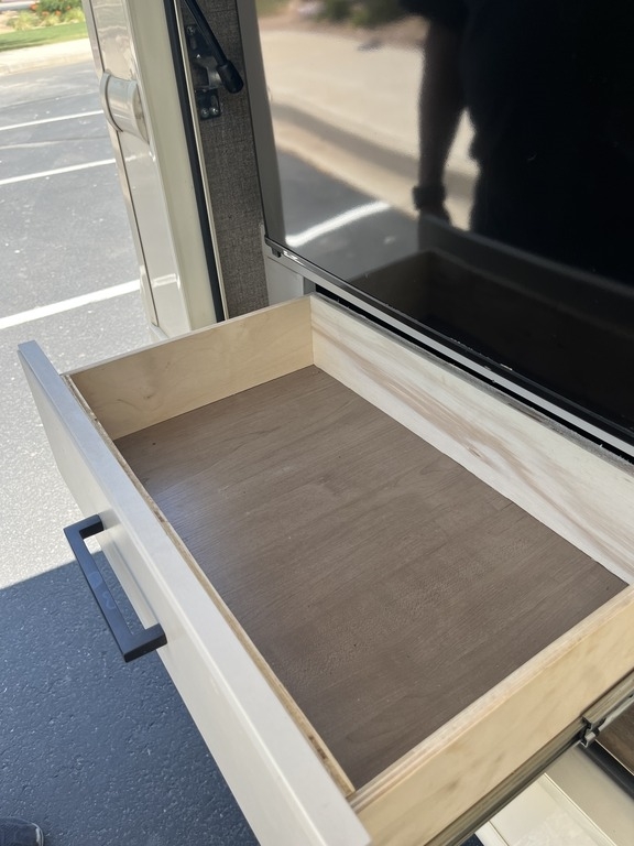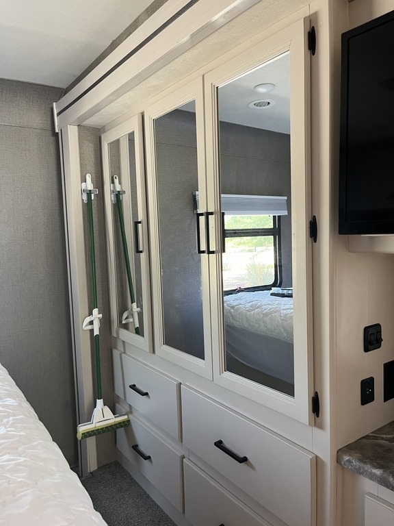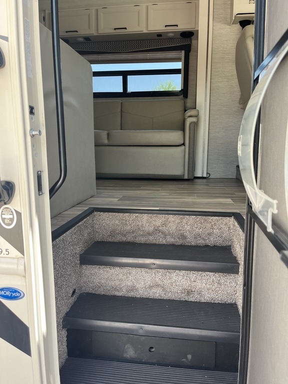pass-through storage, motorhome mudroom compartment for boots and shoes,